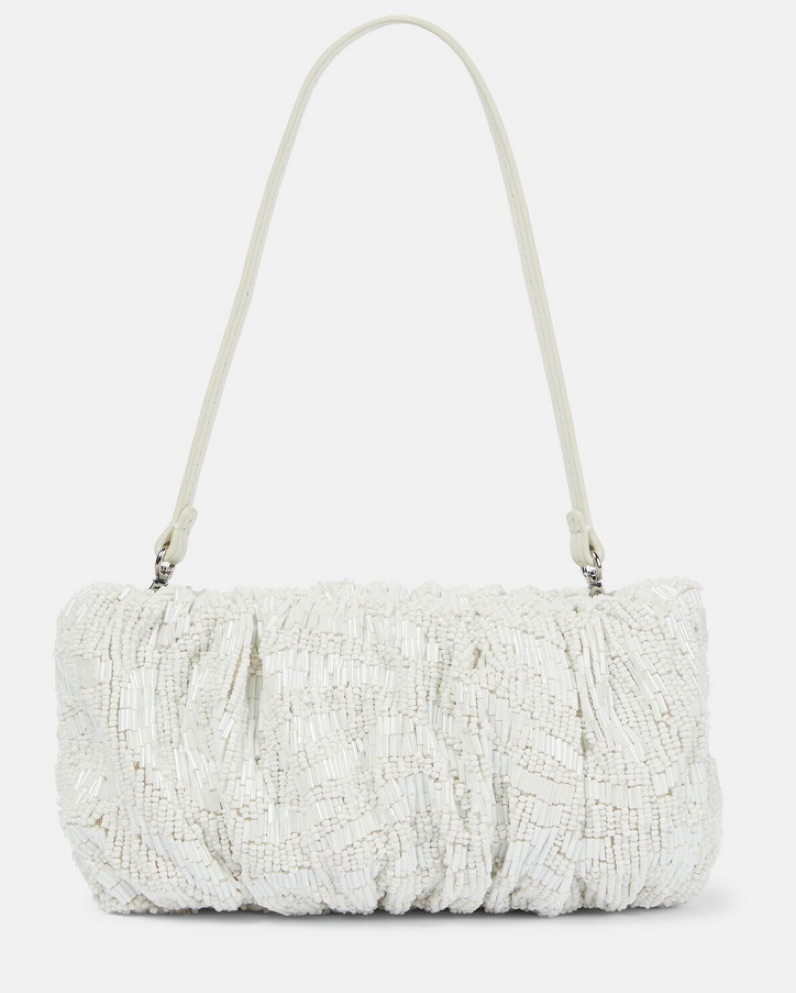 STAUD - Beaded Bean Bag - Cream Swirl - can be worn as a clutch or shoulder bag