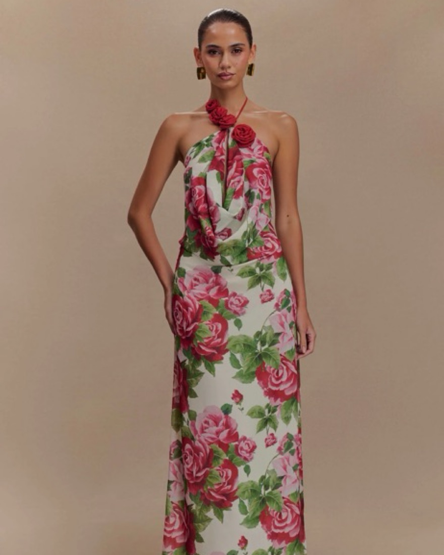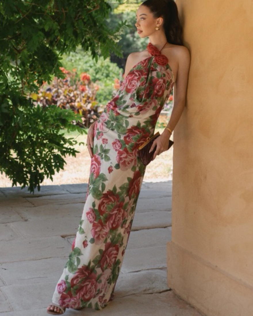 ROSALIA Cowl Neck Maxi Dress is a captivating blend of elegance and romance.