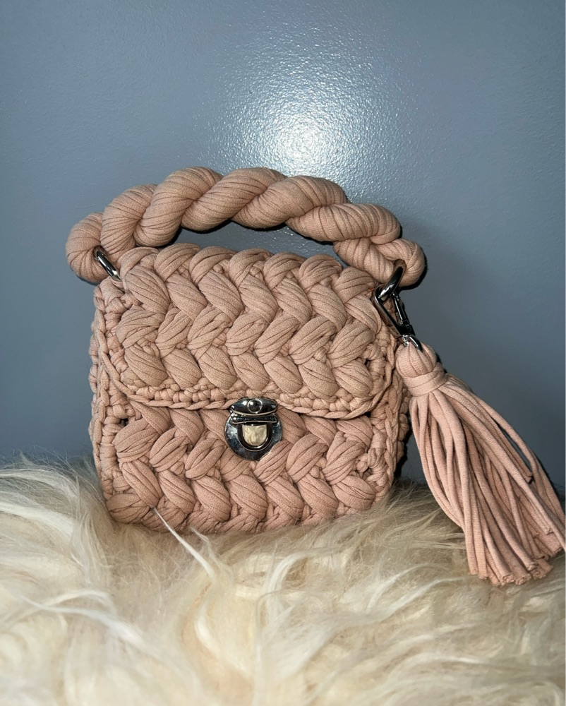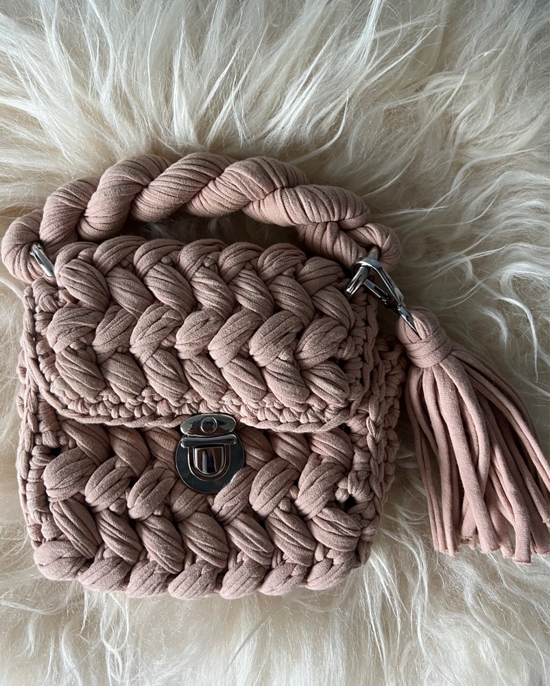Crochet woven mini handbag in a soft blush nude / dusty rose neutral — the perfect mix of feminine and versatile 🤍
