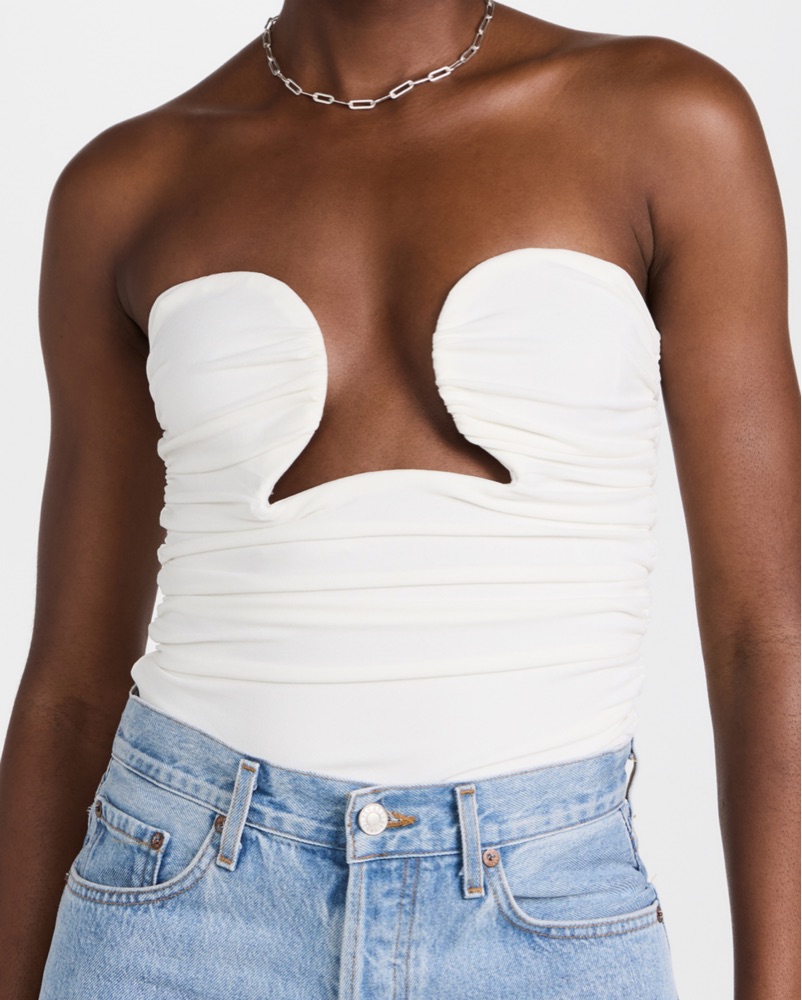Add a touch of night-out style to your everyday look with this striking Pixie Market bustier top. This piece is delicately ruched for a formfitting look