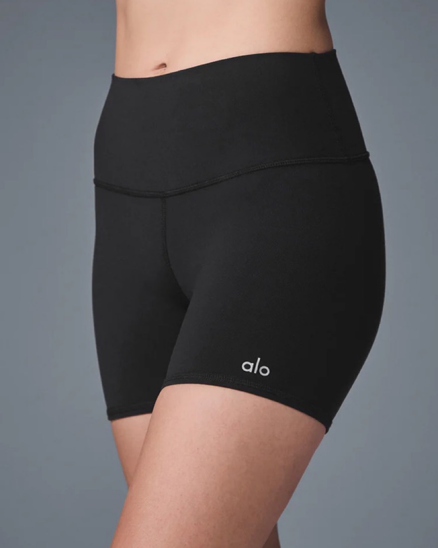Influencer: Alyssa Lynch - These high-performance Alo bike shorts are designed for an active lifestyle. Their smooth, streamlined silhouette makes them perfect for yoga, Pilates, or running errands in style.