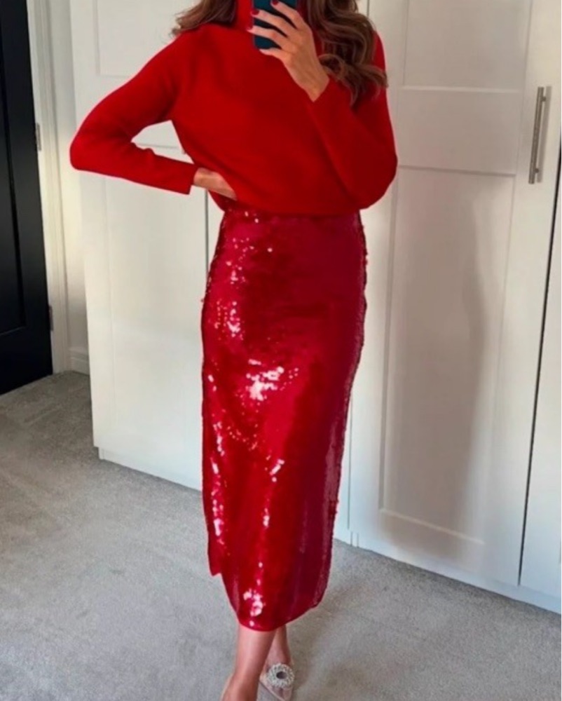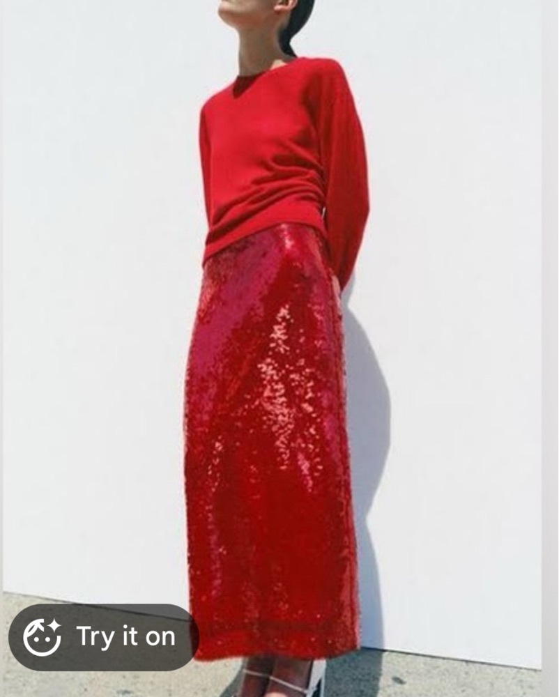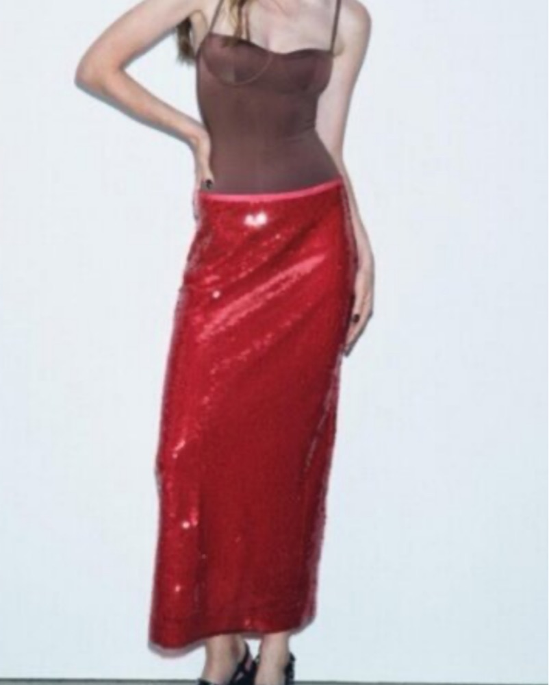 Zara red Sequin Skirt
