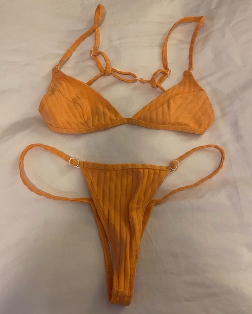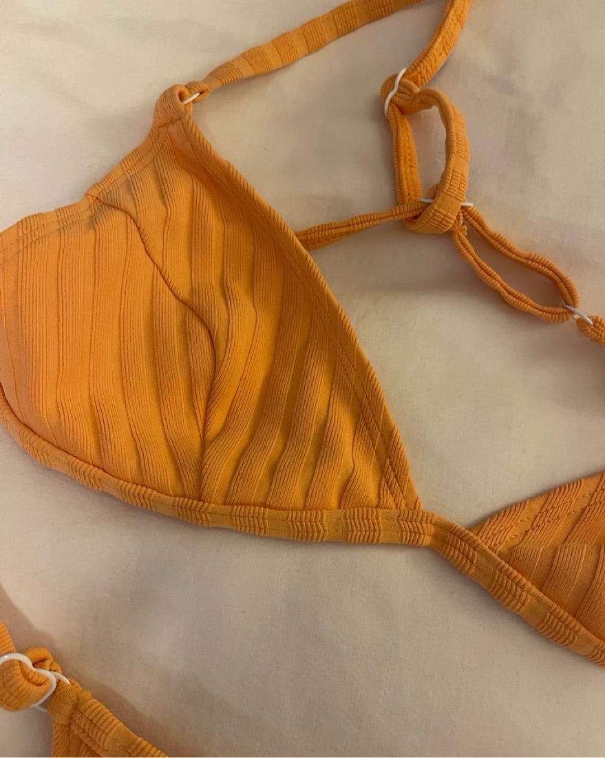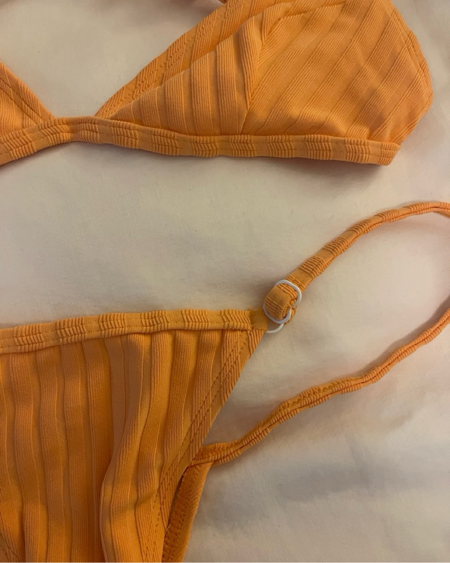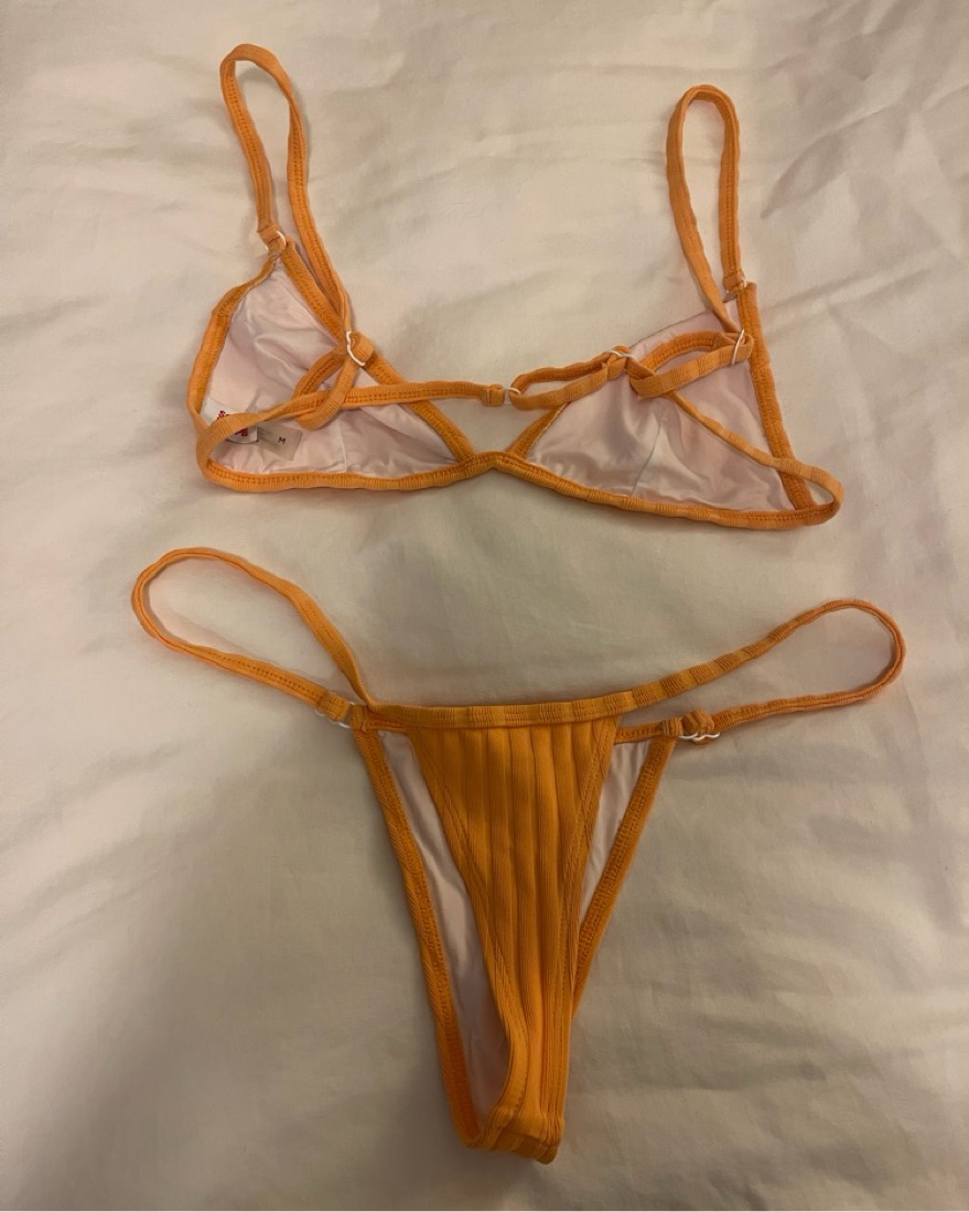 Solid & Striped orange bikini. Ribbed material. Worn once
