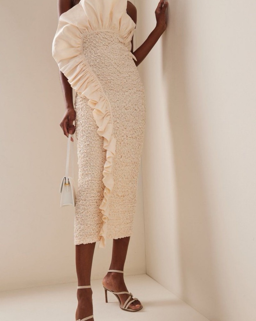 This strapless dress features a smocking throughout that creates a popcorn texture for added comfort and stretch. Its a great dress if you want to eat good but look good too hehehe. Made from 100% organic cotton. Self tan/makeup girlesp please be mindful of product transfer! :)