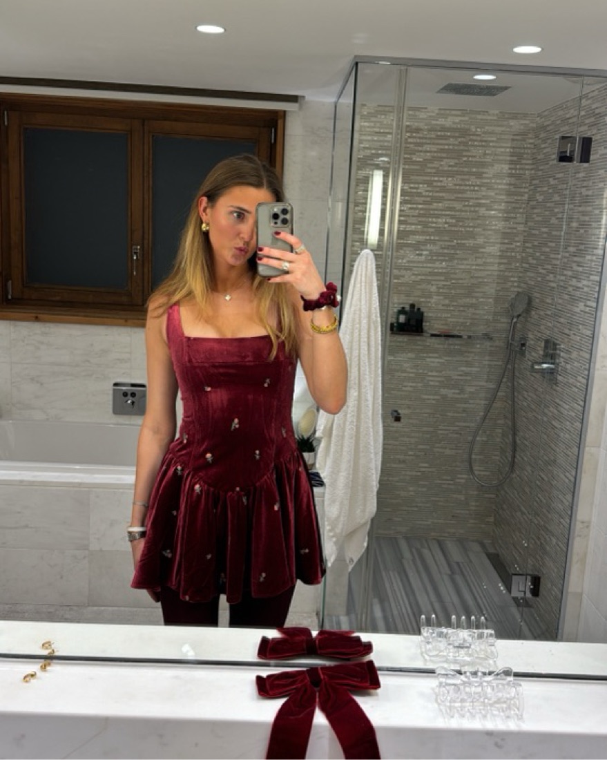 Winter velvet burgundy corset mini dress. Perfeft to pair with burgundy tights, black kitten heels, and a bow.