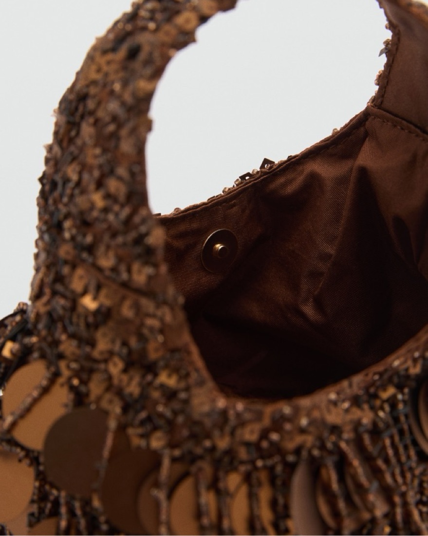 Brown Sequin Beaded Mini Bag