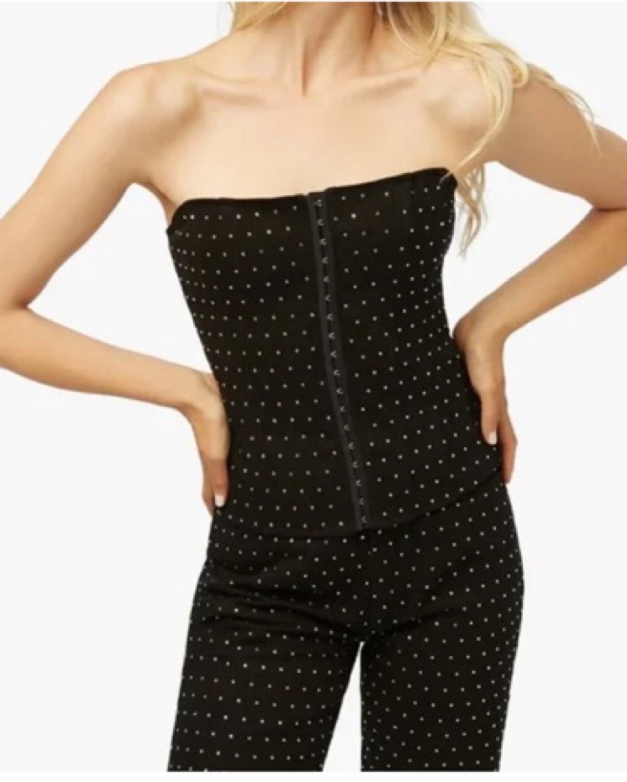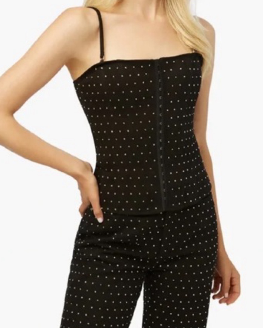Weworewhat Mesh Denium Twill Gem Corset by WeWoreWhat - Pickle