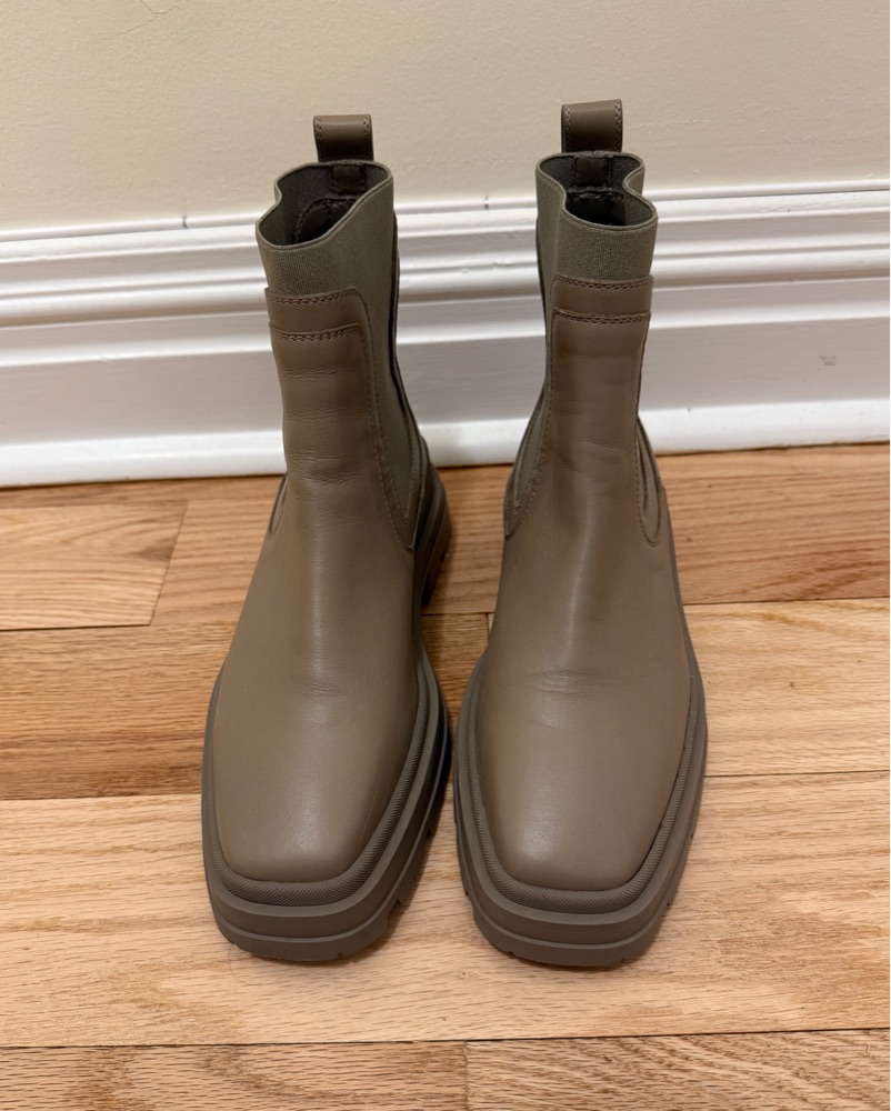 Taupe/grey boots, size 37 1/2, square toe front, originally $1,095. Only worn once!! (Too tight on me)