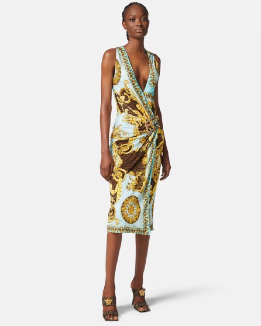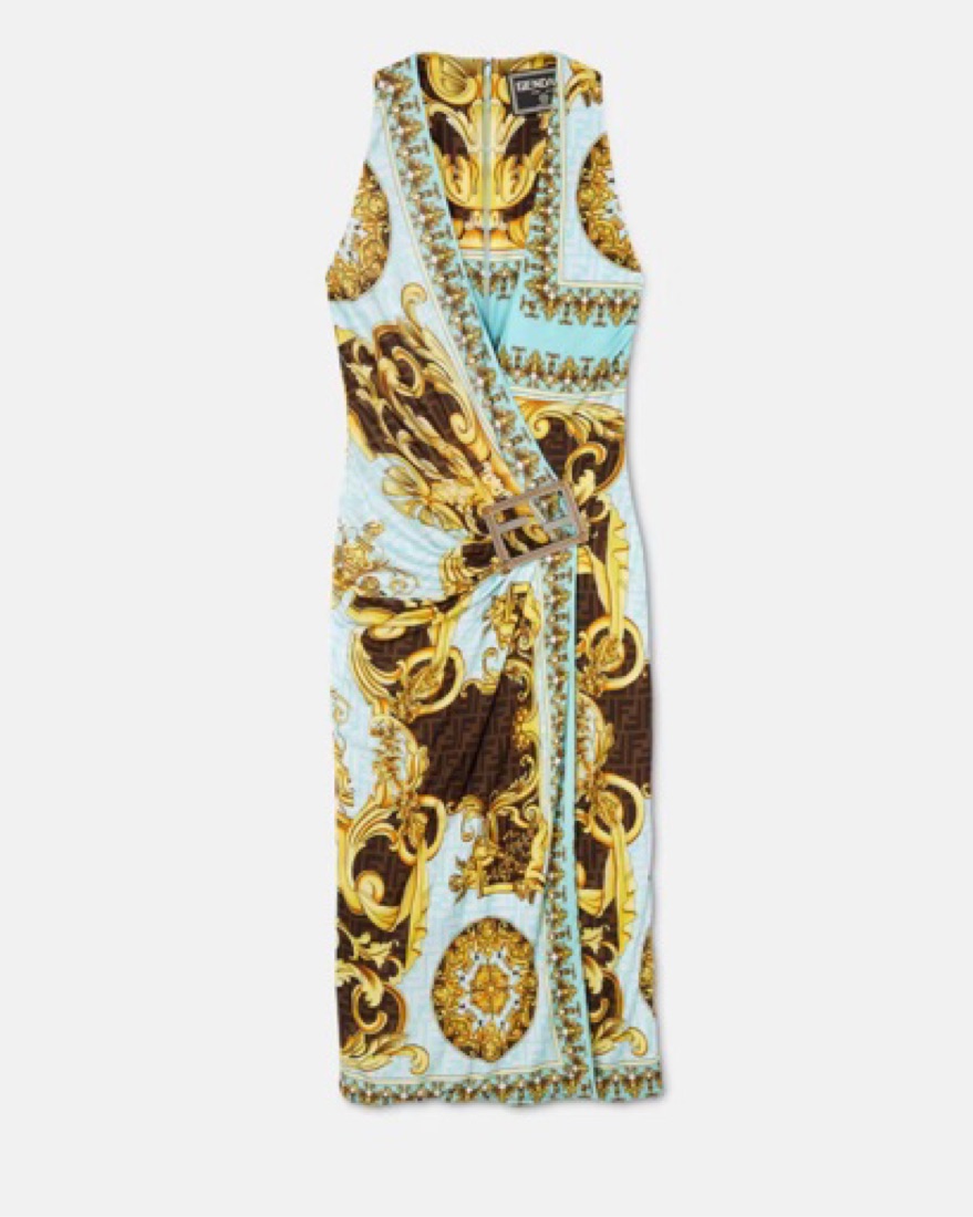 FENDACE GOLD BAROQUE MIDI DRESS by Versace - Pickle
