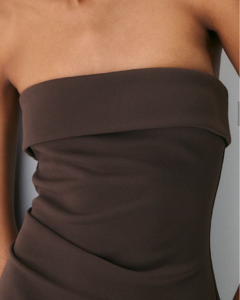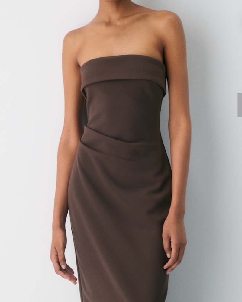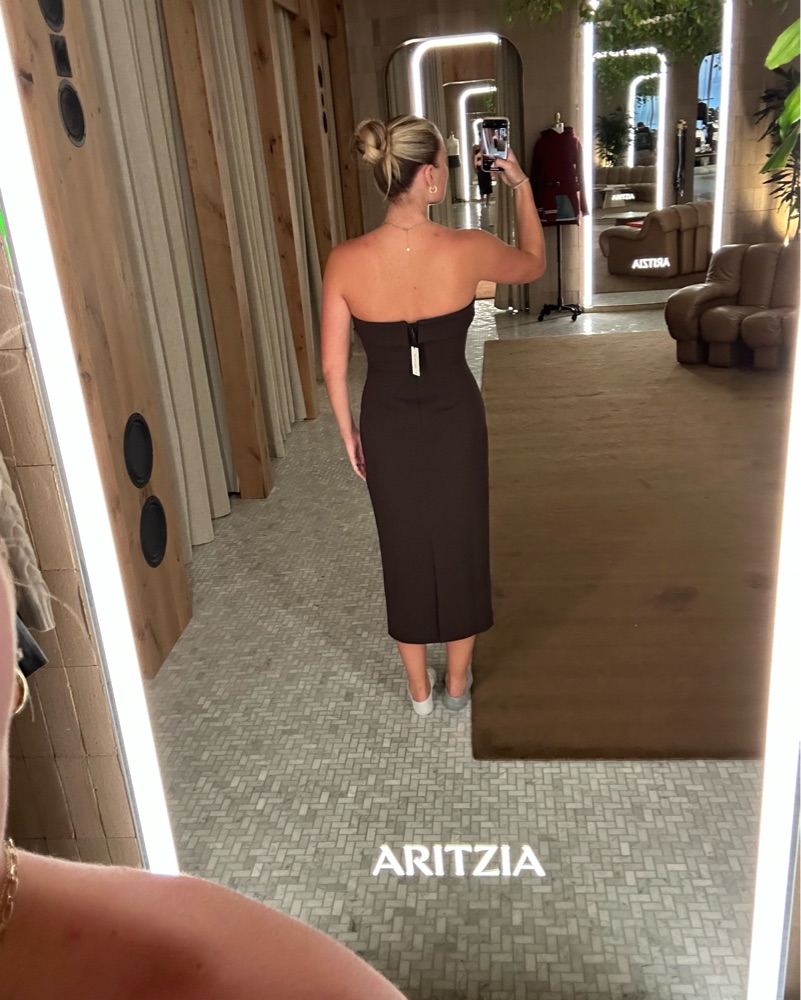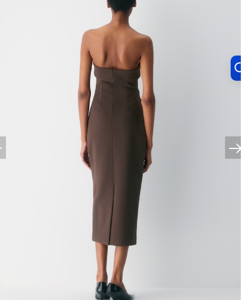 brown strapless midi dress - size medium. easy to dress up or down! more details below: