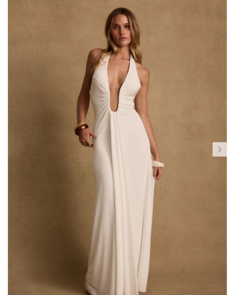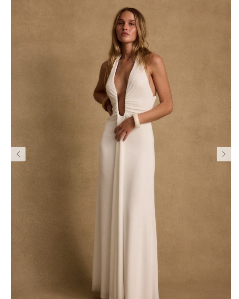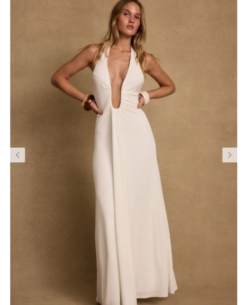 Alondra Plunge White Maxi Dress by 12th Tribe - Pickle