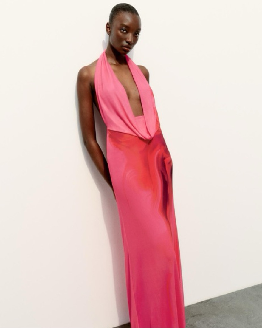 Deep Neckline Halter Gown by Zara - Pickle