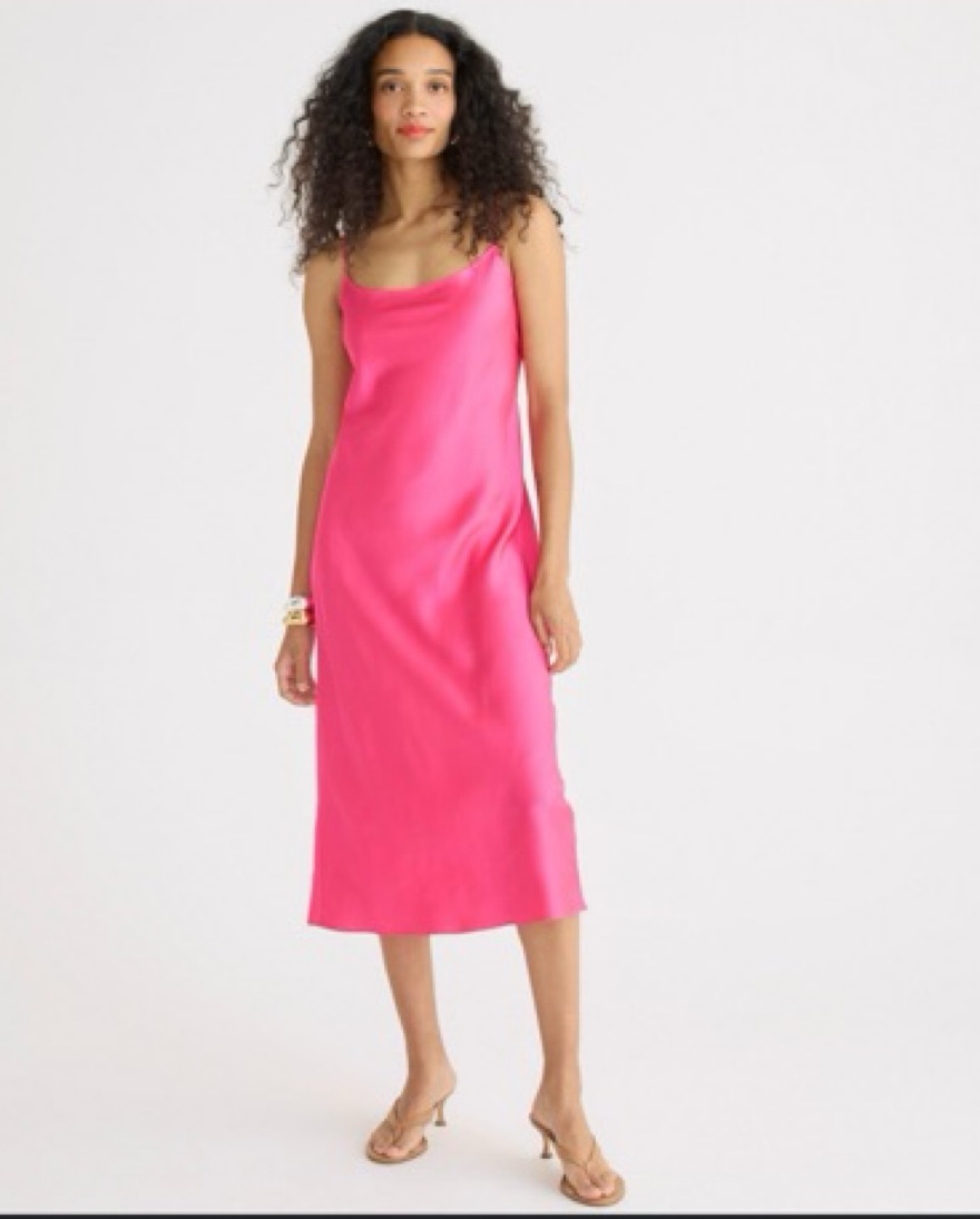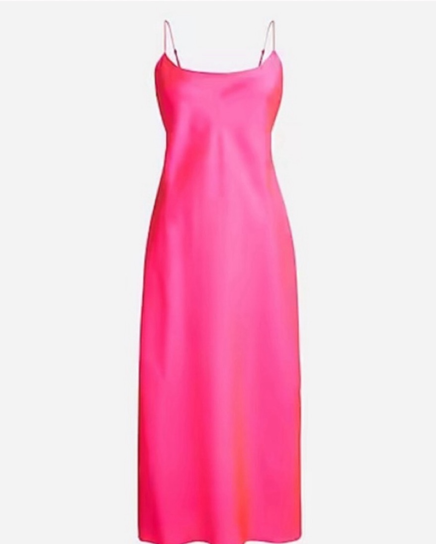 Hot pink JCrew 90s style slip dress. Can be dressed up for parties and galas or dressed down for brunch. Has adjustable straps.