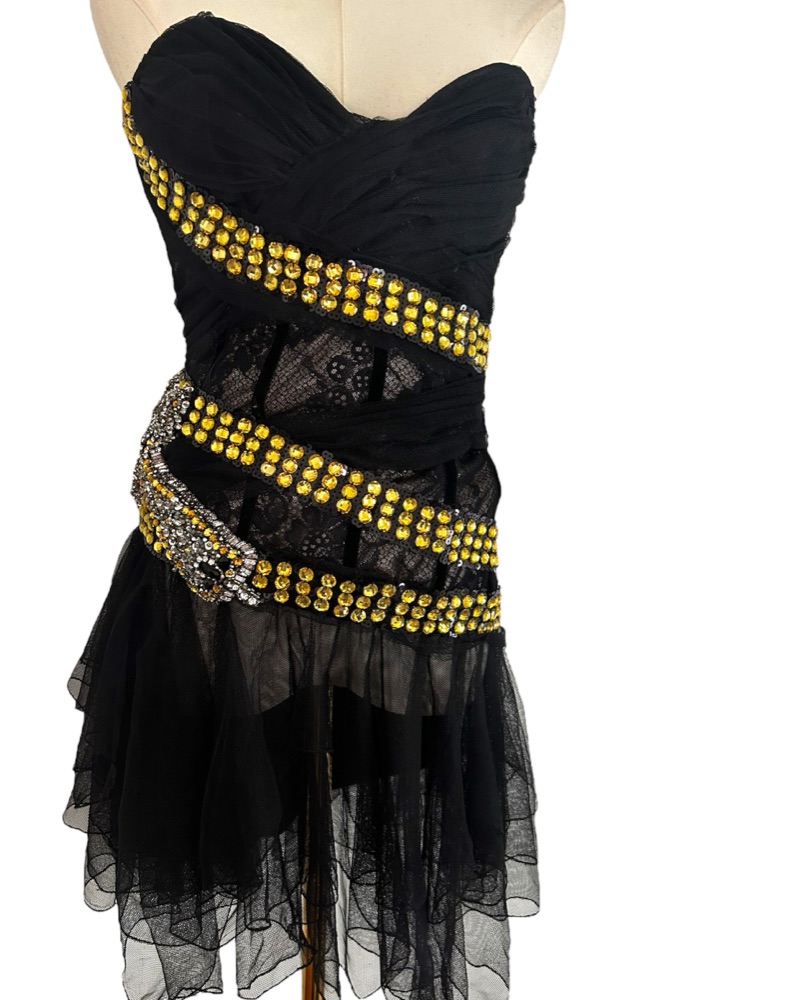 AUTHENTIC MANDALAY CRYSTAL CROSS MINI DRESS IN LACE BLACK. CORSETED INSIDE. ALTERED TO FIT A SIZE 2-4. Famously worn by icons such as Paris Hilton, Selena Gomez and many more 🤩In Great Condition. Perfect Holiday NYE / Christmas Dress!