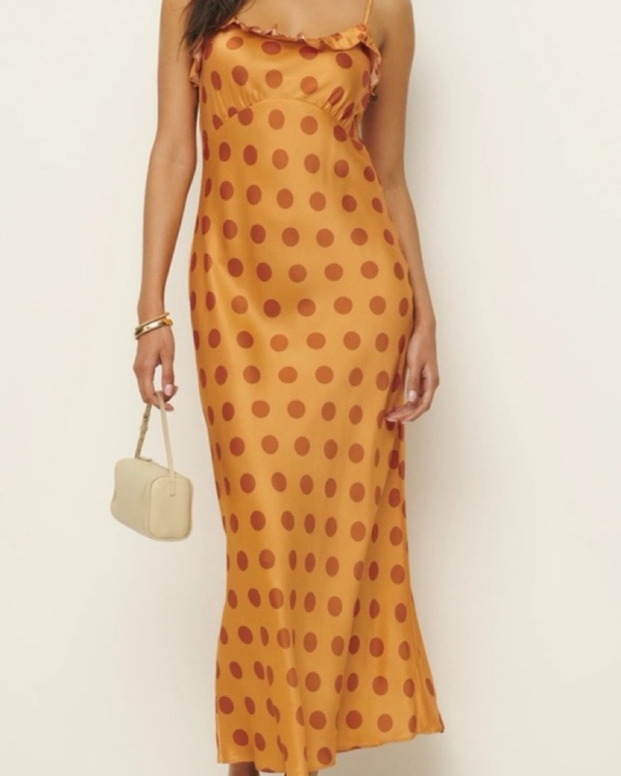 Silk orange polka dot dress! Super cute and light weight for spring and summer.