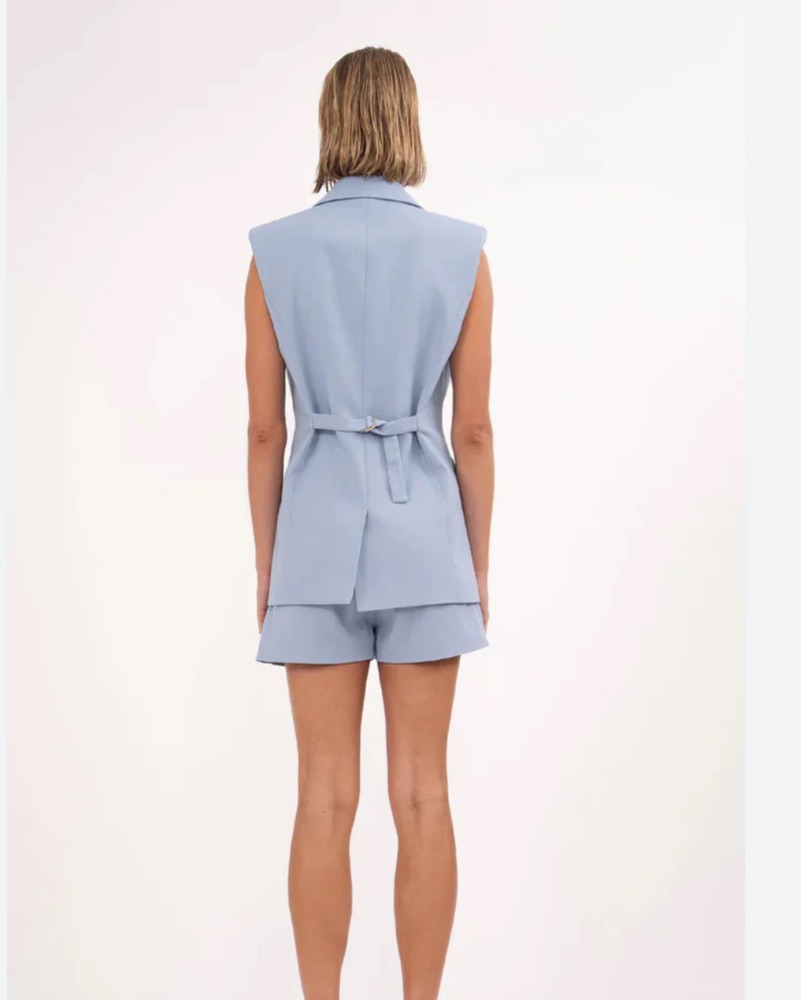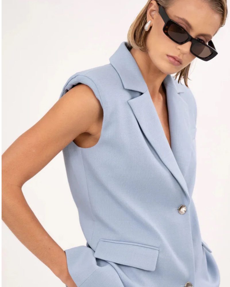 Very stylish set! I get so many complements. The buttons are actually the same colour as the suit, they look different in the ecom shots but better in person. The set looks amazing with normal heels or boots