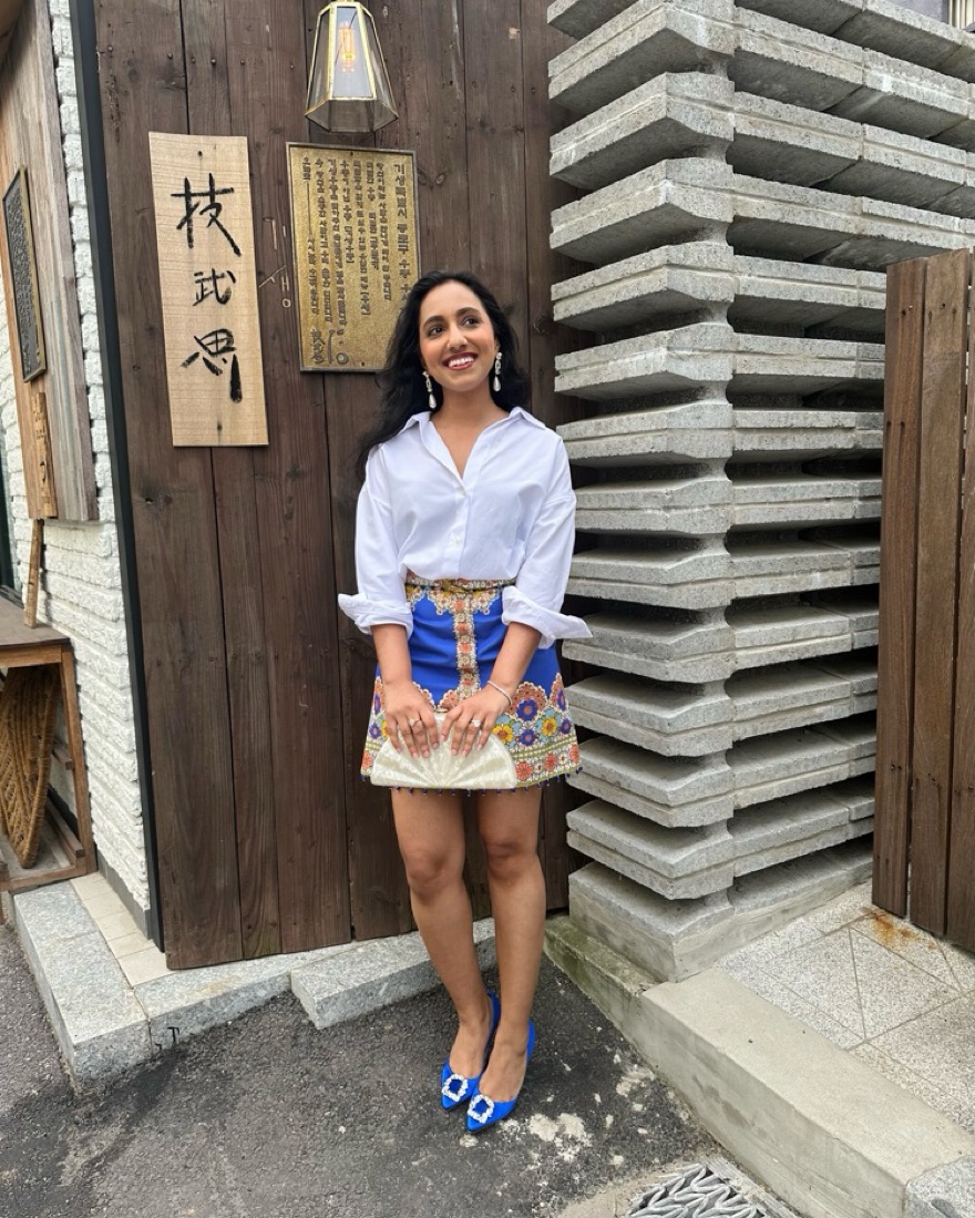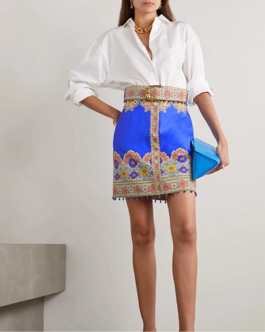Zimmermann blue Cosmic Sagittarius mini skirt with matching belt.