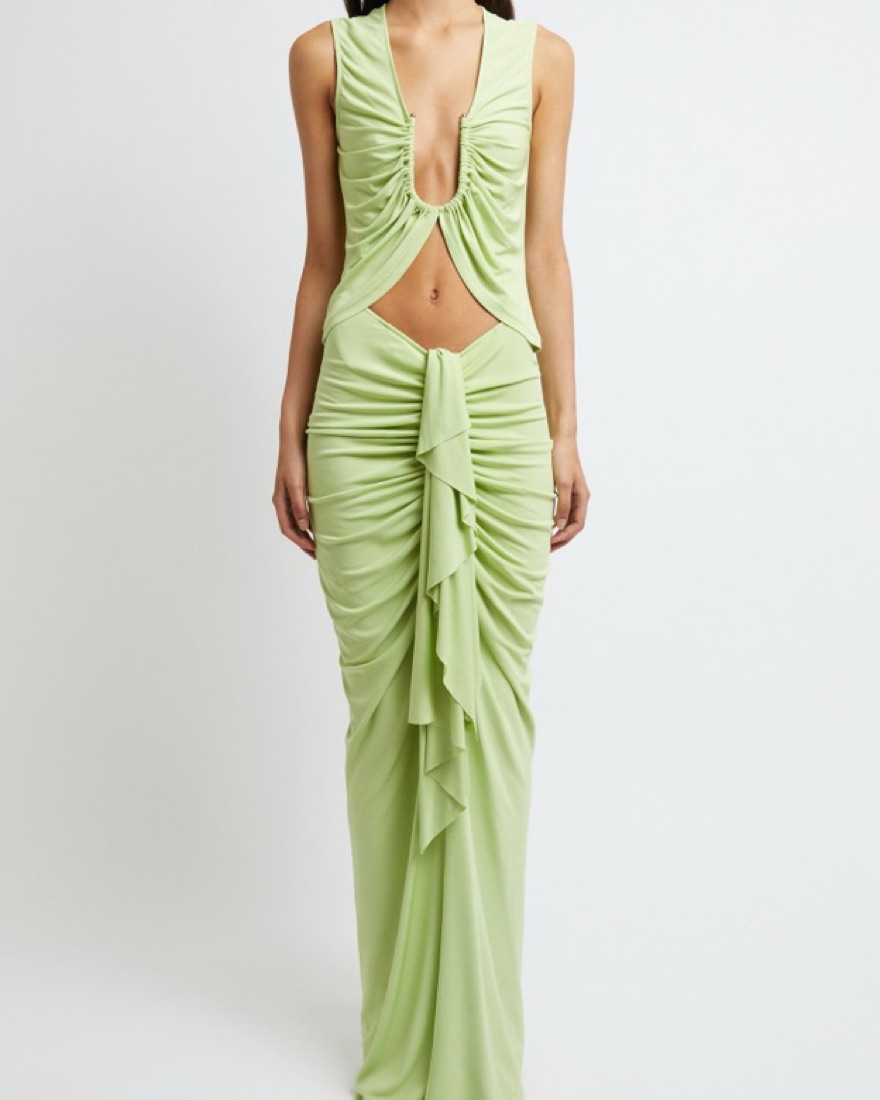 Christopher Esber Drape Front Skirt and U-Ring Tank in Mint Green. Size US 4 Skirt & 0 Top. (small discoloration on shoulder of top)