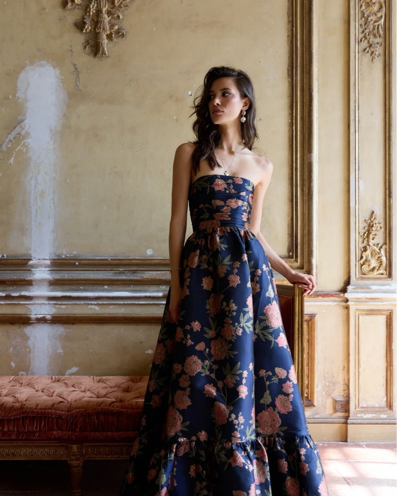 v chapman Navy Floral Strapless Dress by V Chapman - Pickle