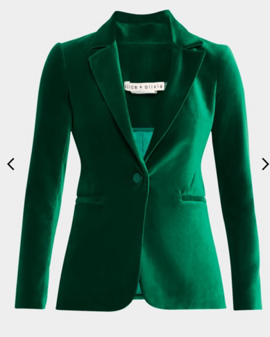 Alice + Olivia Velvet Green Work Blazer