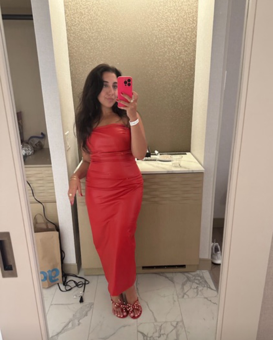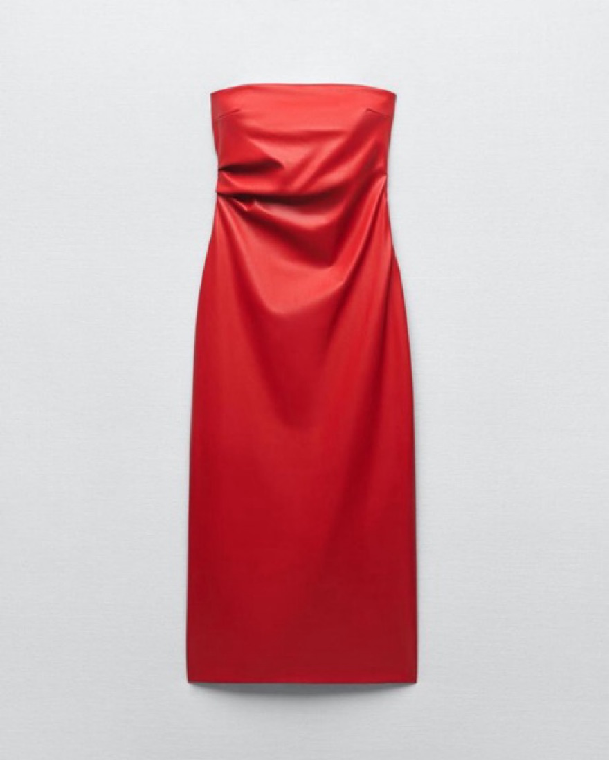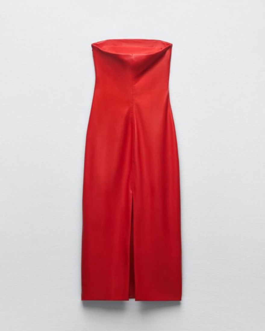 Zara Strapless Red Faux Leather Dress