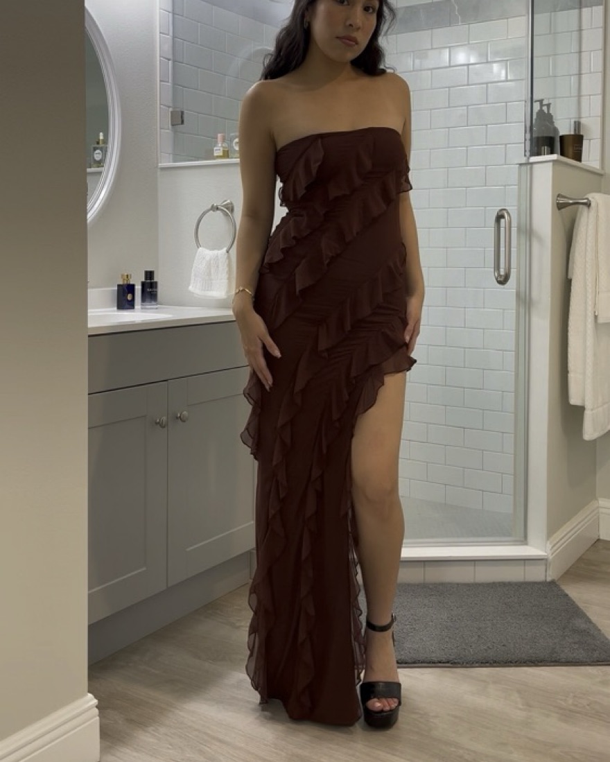 Oh Polly Nevali Bandeau Ruffle Dress
