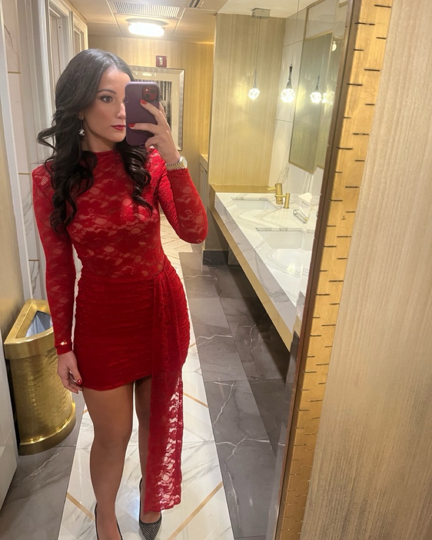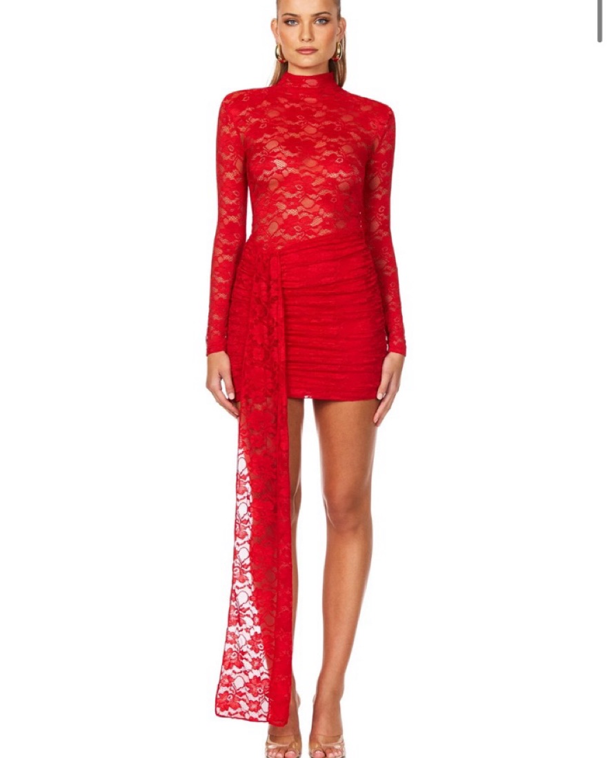 This hott dress is perfect for a fun event ! Dress is red lace. I had a custom nude lining made for the breast area. Has a cute sash. Shoulder padding in dress. Putting on sleeves need to be put on like stockings. Please be careful with the lace and enjoy! Dry cleaning is built into price