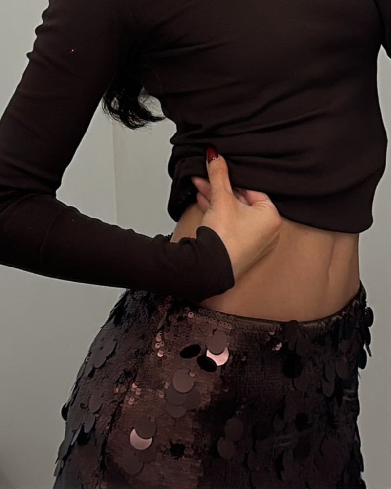 Elevate your style with this captivating sequin midi skirt. Perfect for a night out or special occasion.