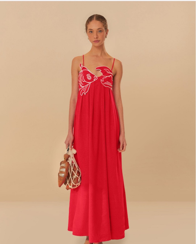 Farm Rio Viral Red Fish Maxi Dress