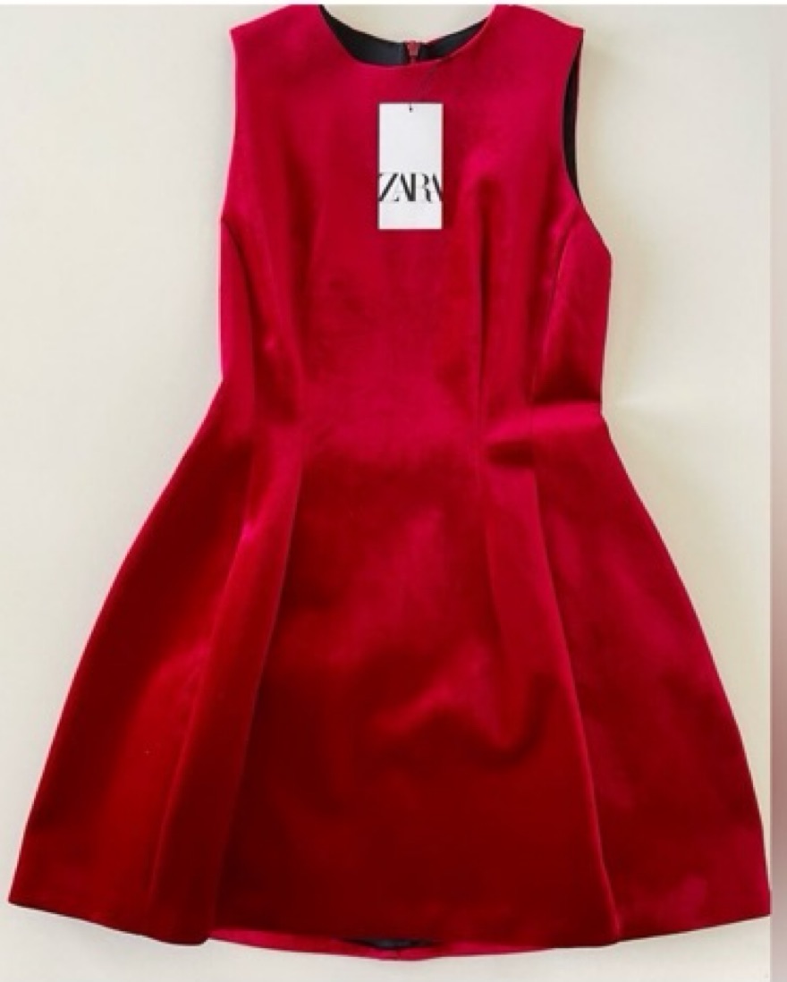 Zara red velvet voluminous mini dress by Zara - Pickle