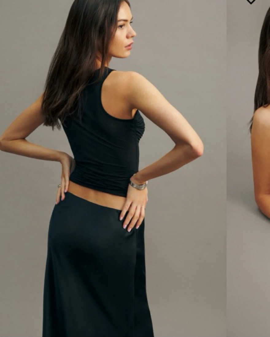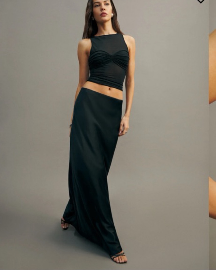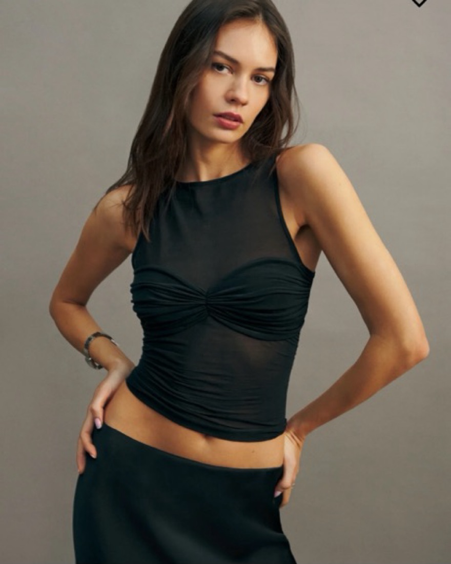 Sheer tank from reformation. Very delicate so plz be careful with her. Perfect for a date night! This look can be completed with the DISSH satin maxi skirt that’s also available for rent