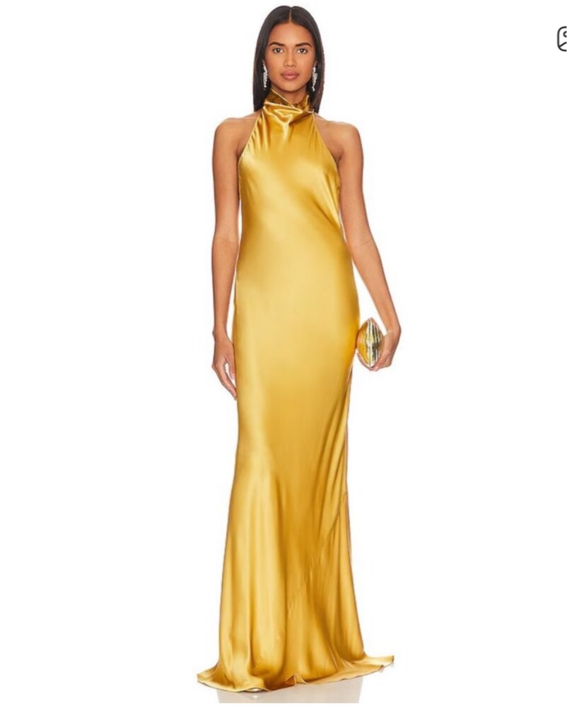 Amanda Uprichard Gold Maxi Silk Gown by Amanda Uprichard - Pickle