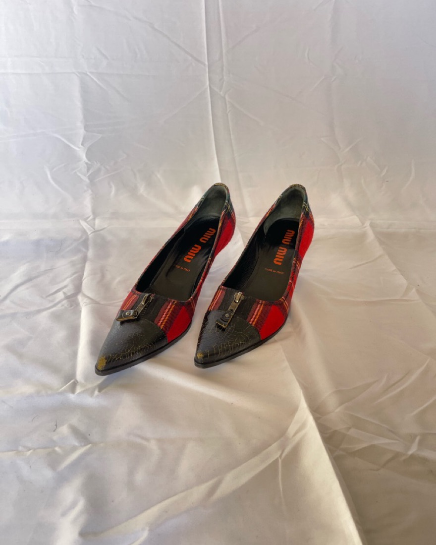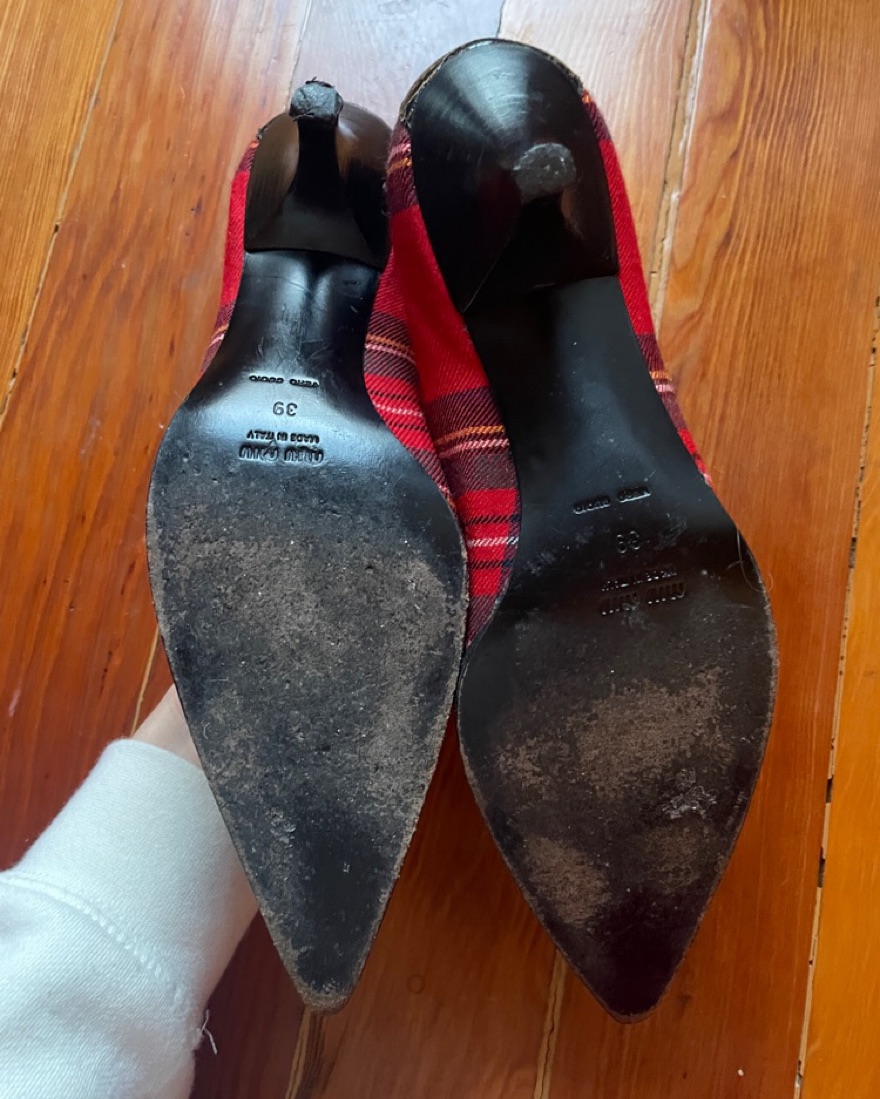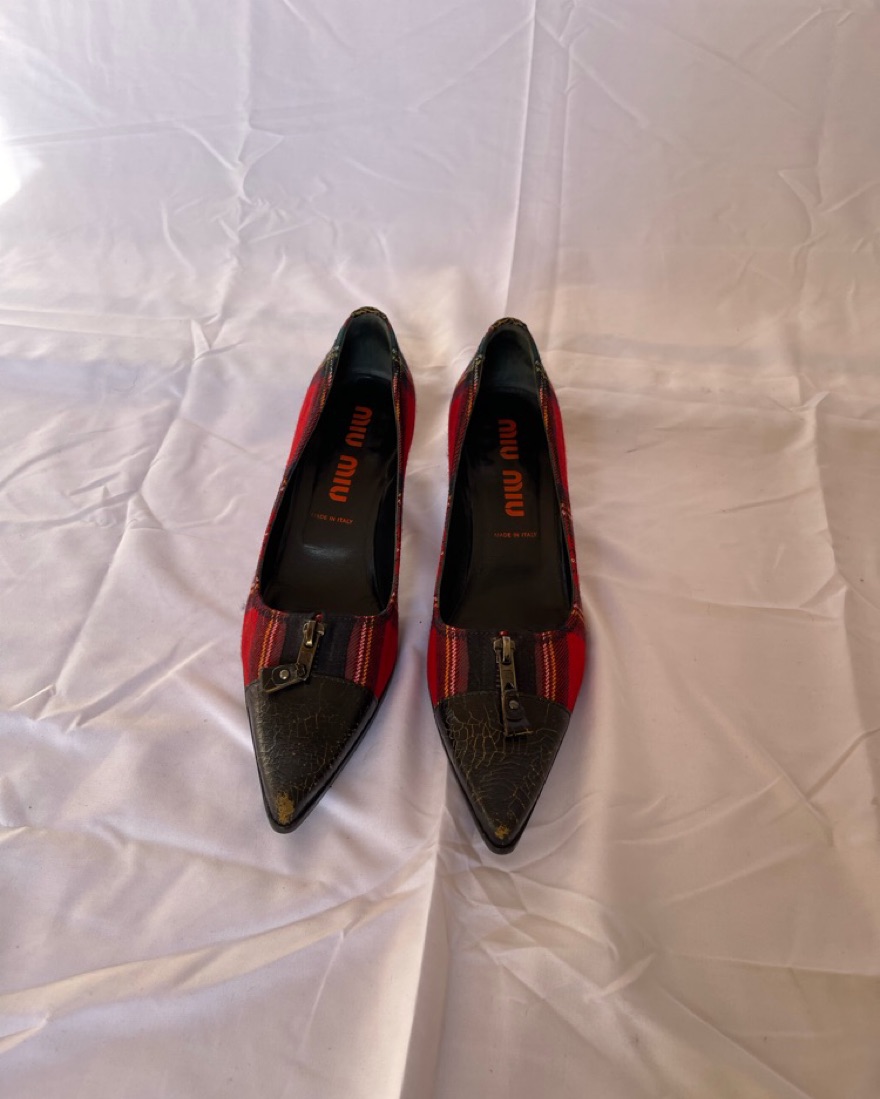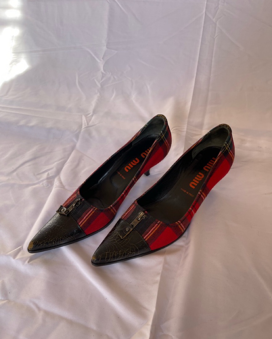 Miu Miu Plaid Kitten Heels by Miu Miu - Pickle