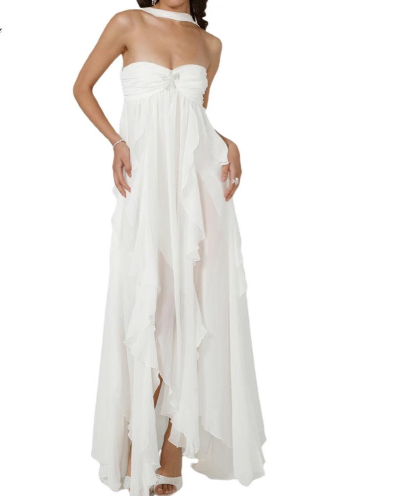 Summer Sleeveless Dress Ruffled Hem by Auuyqmt - Pickle