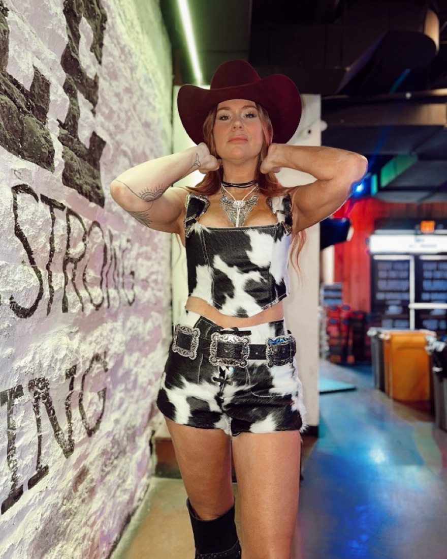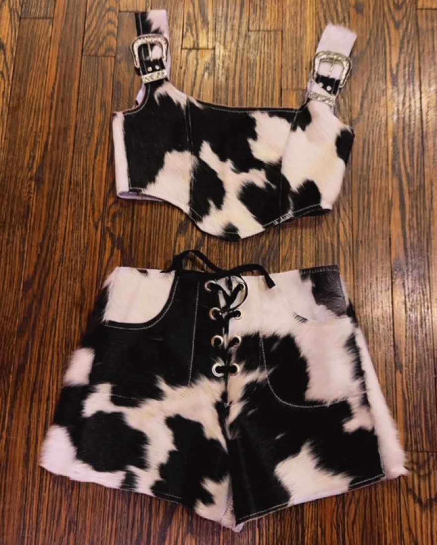 This chair on cowhide set I s perfect for a fun night out or festival. The bold pattern and lace-up details add a touch of edge to this playful look.