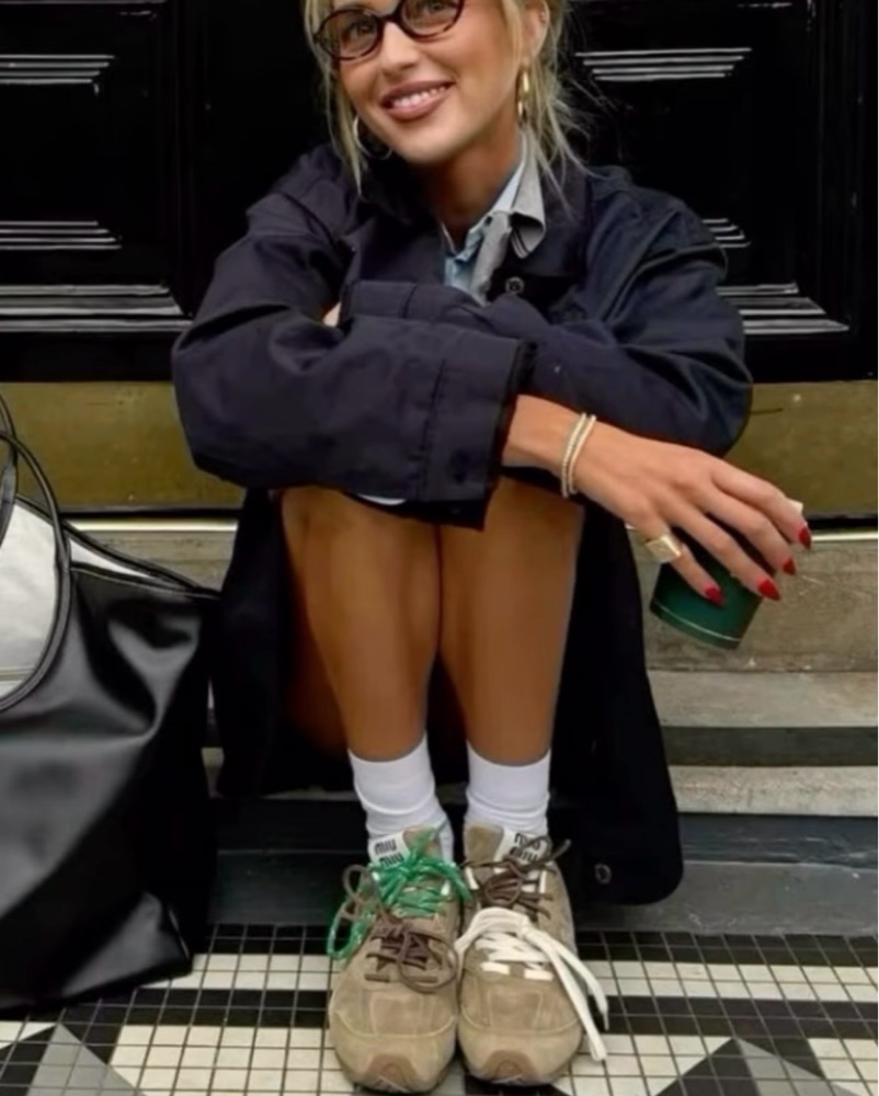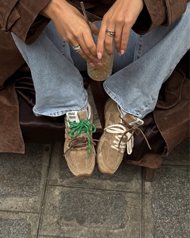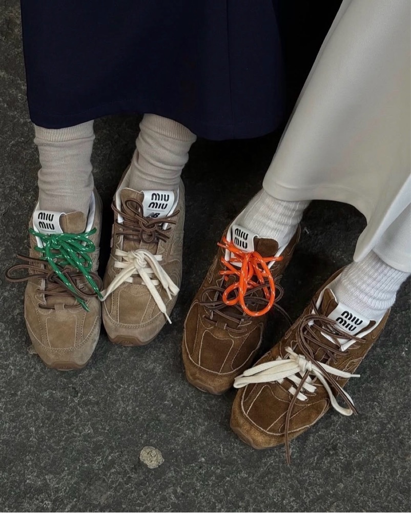*imperceptible dupe! One of the best collabs. Miu Miu x New Balance create a minimalist design on a classic sneaker silhouette. Suede, mesh. Tags: Miu Miu, fall, cute shoes, light brown