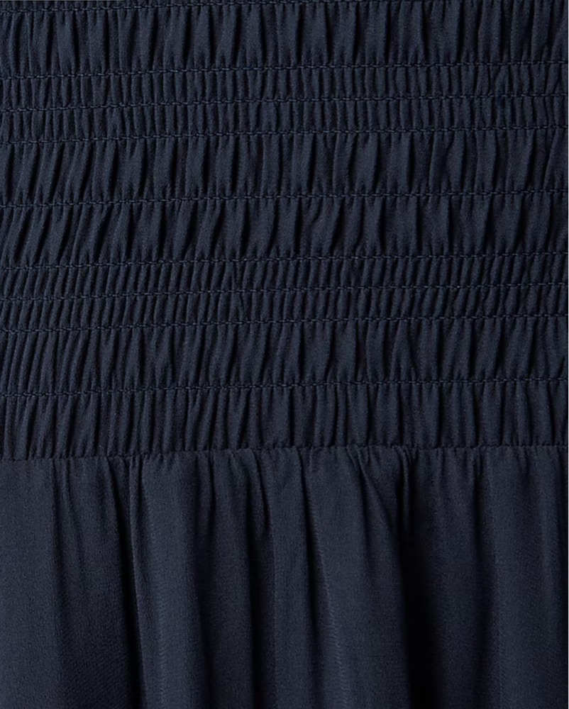 Refined silhouette with lots of texture. Designed with ruffle details along the top, smocking all the way through the hips and a floaty skirt, it's ultra-flattering!!