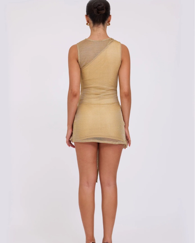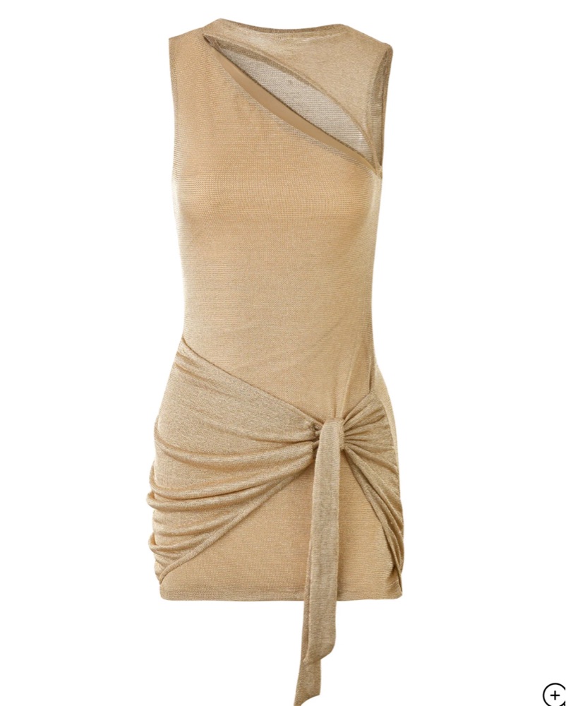Absolutely perfect dress for a birthday, night out, date night, etc.Tank style dress in a gold metallic knit fabrication