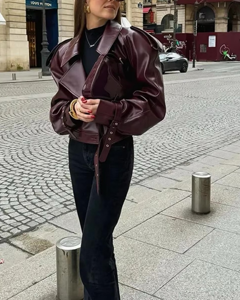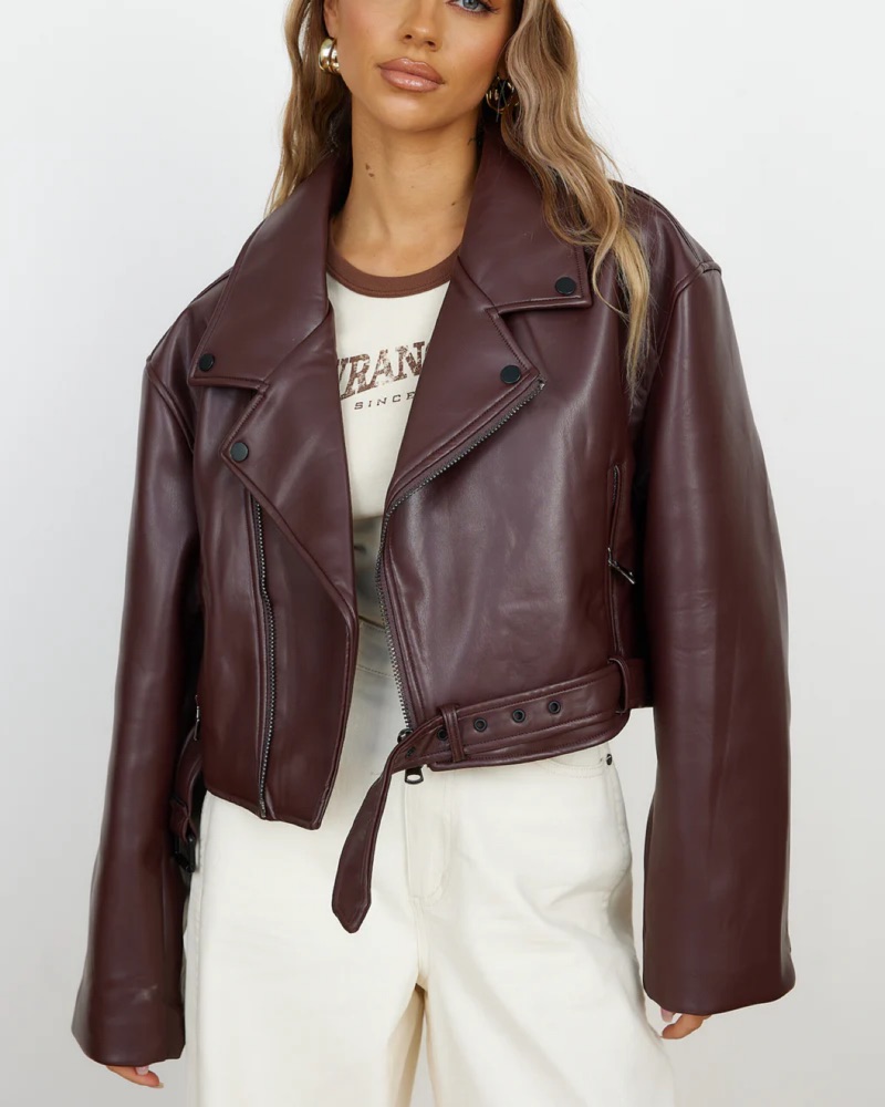 Mulberry Leather Jacket by Lioness - Pickle