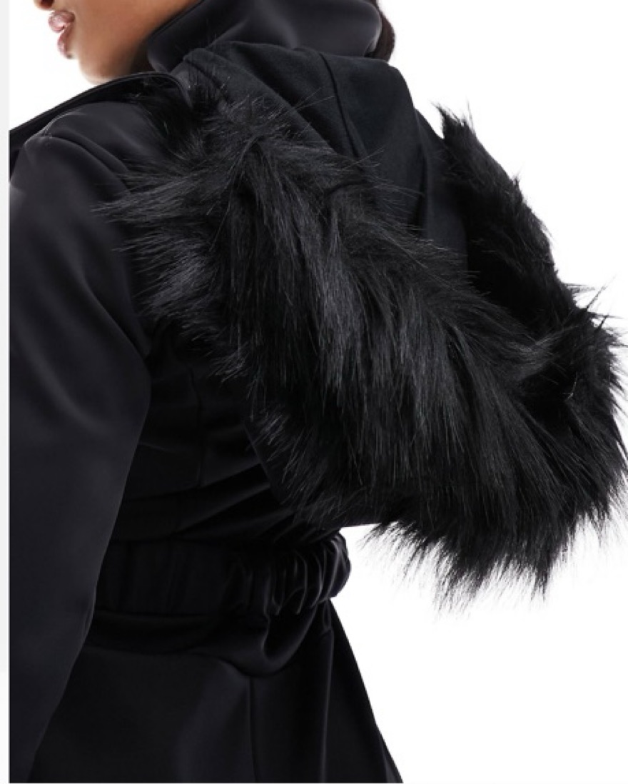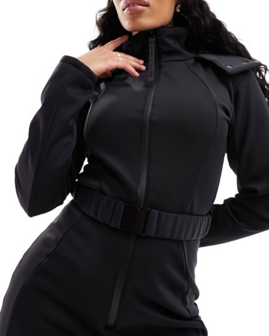 Black Belted Ski Suit Faux Fur Hood by ASOS - Pickle
