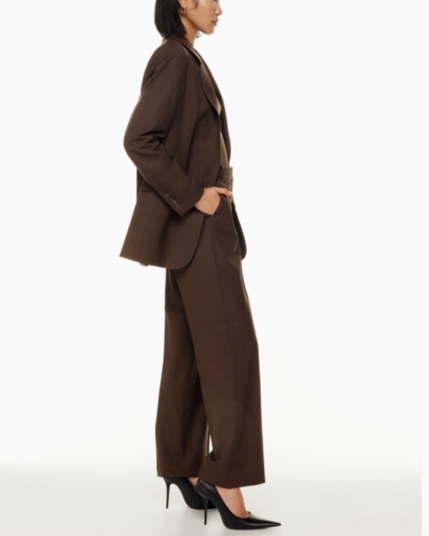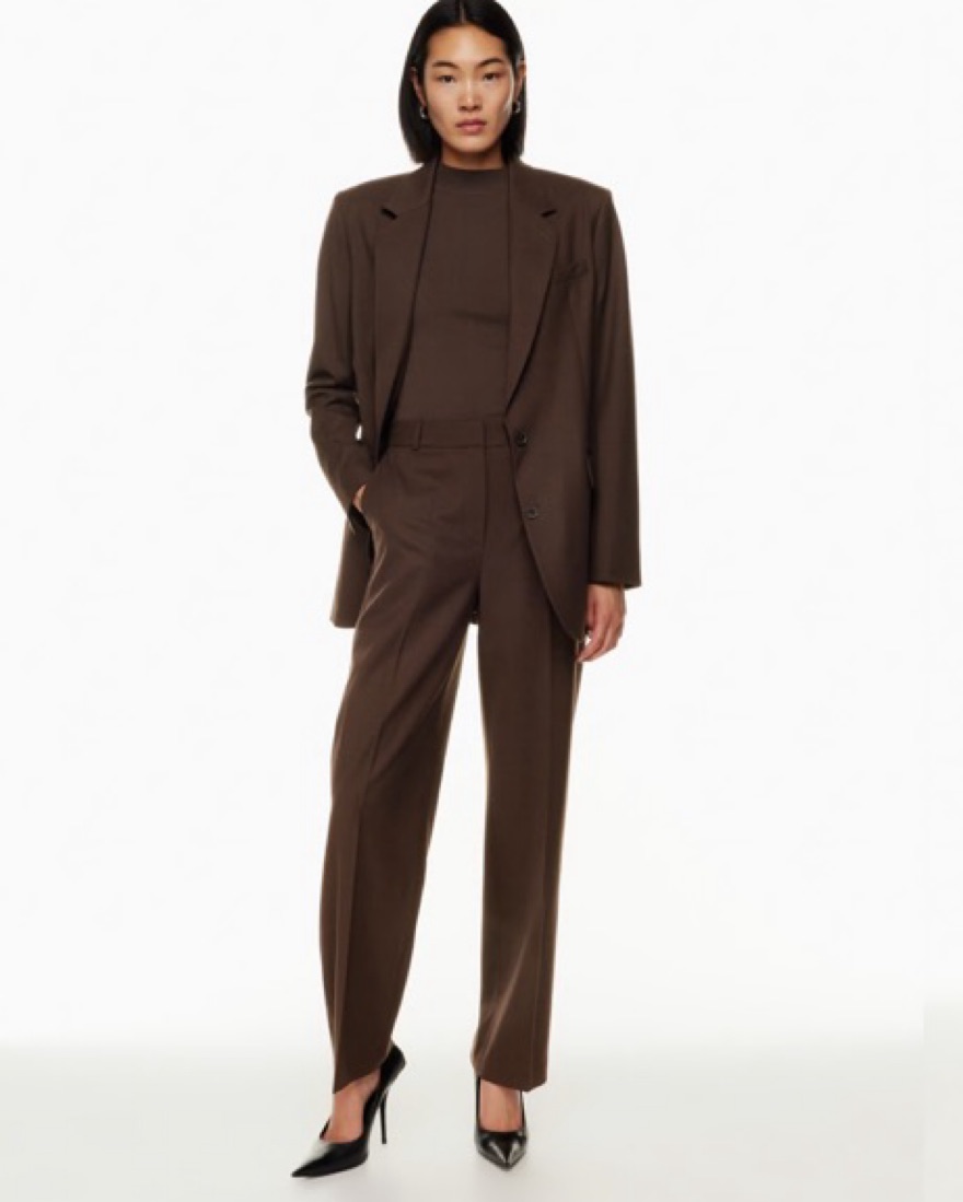 Color: Rich mocha brown. I also have matching gen. blazer🤎 these pants give you that custom-tailored look without the hassle. These are high-rise pants with a classic fit and darted back waist for shaping. (Re)ssential fabric— softly structured stretch fabric that holds its form while you move.