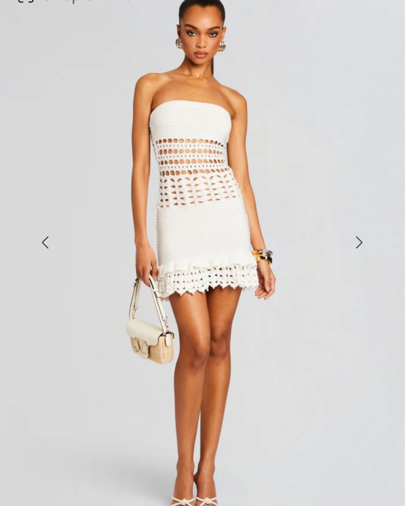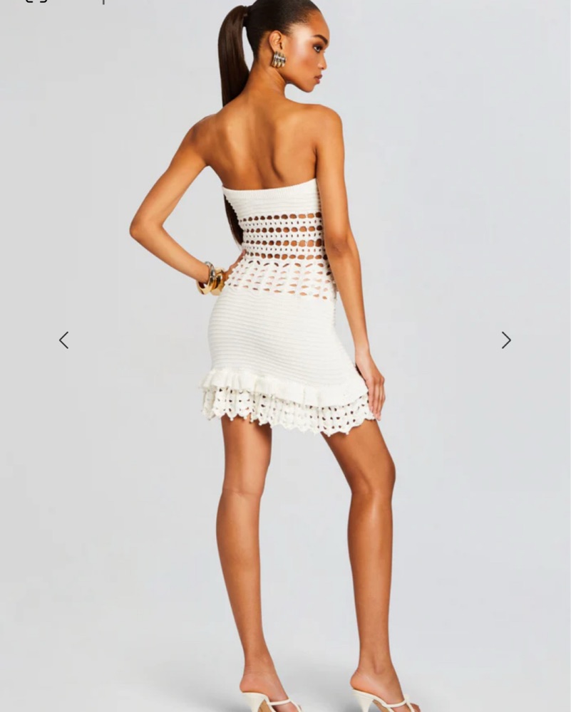Worn once! Beautiful and delicate - perfect for bachelorette or vacation. Fits TTS but does not stretch much. On the shorter side, I’m 5’3.