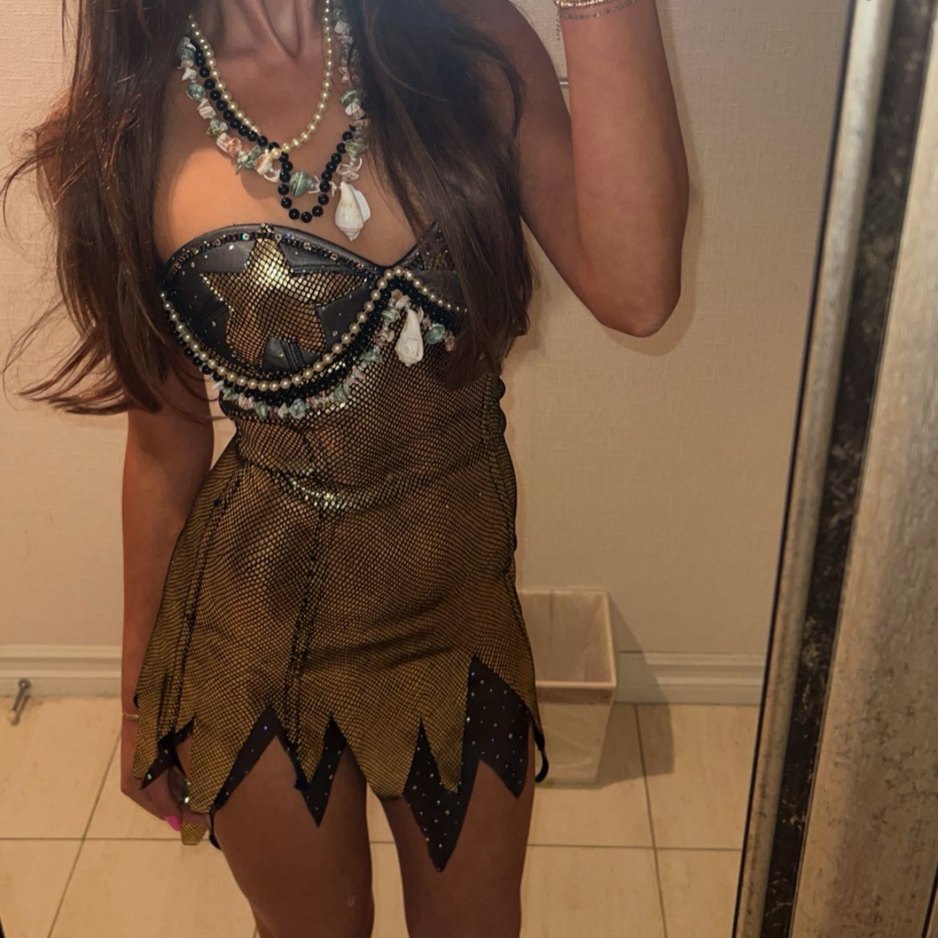 OG perfect condition mermaid mini dress. Gold metallic with shell embellishments. Does not include necklaces. Has push up padding in bra cups. Shorter in front and a bit longer in back. Worn once in perfect condition!