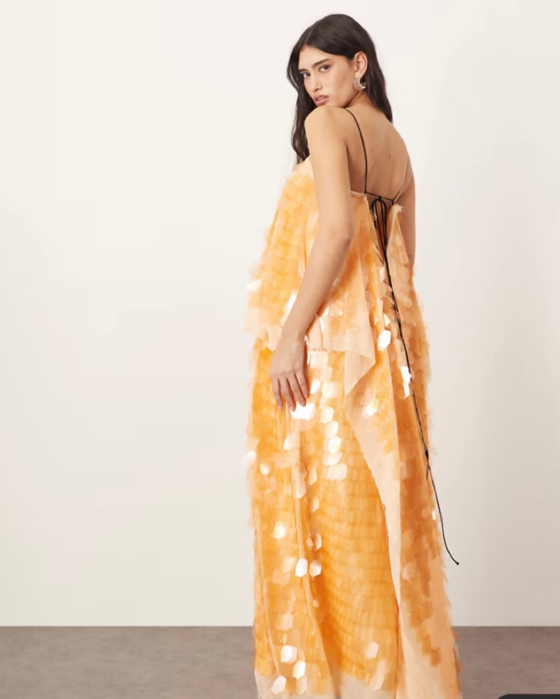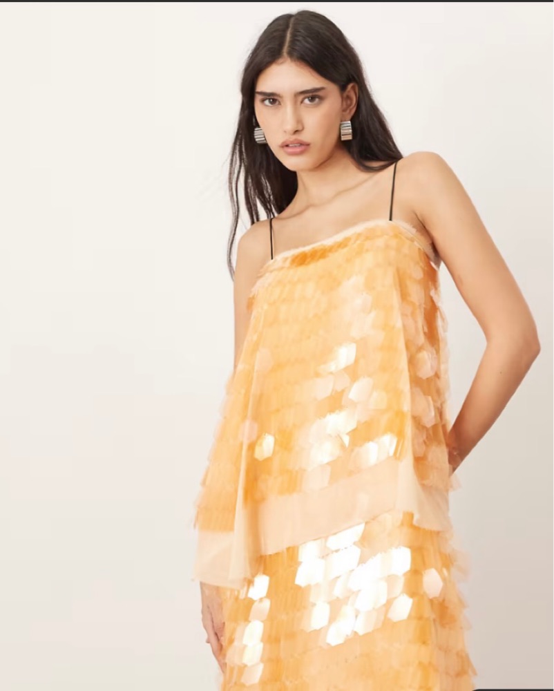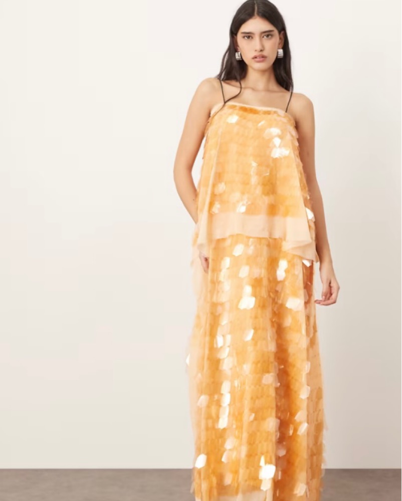 ARRANGE embellished shard sequin layered cami maxi dress in peach - brand new condition. Dress does have some weight to it but still comfortable once you get it on