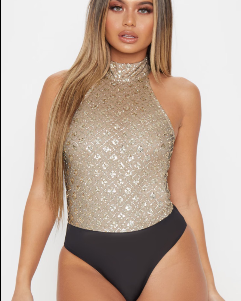 Gold Sequin Bodysuit by Pretty Little Thing - Pickle