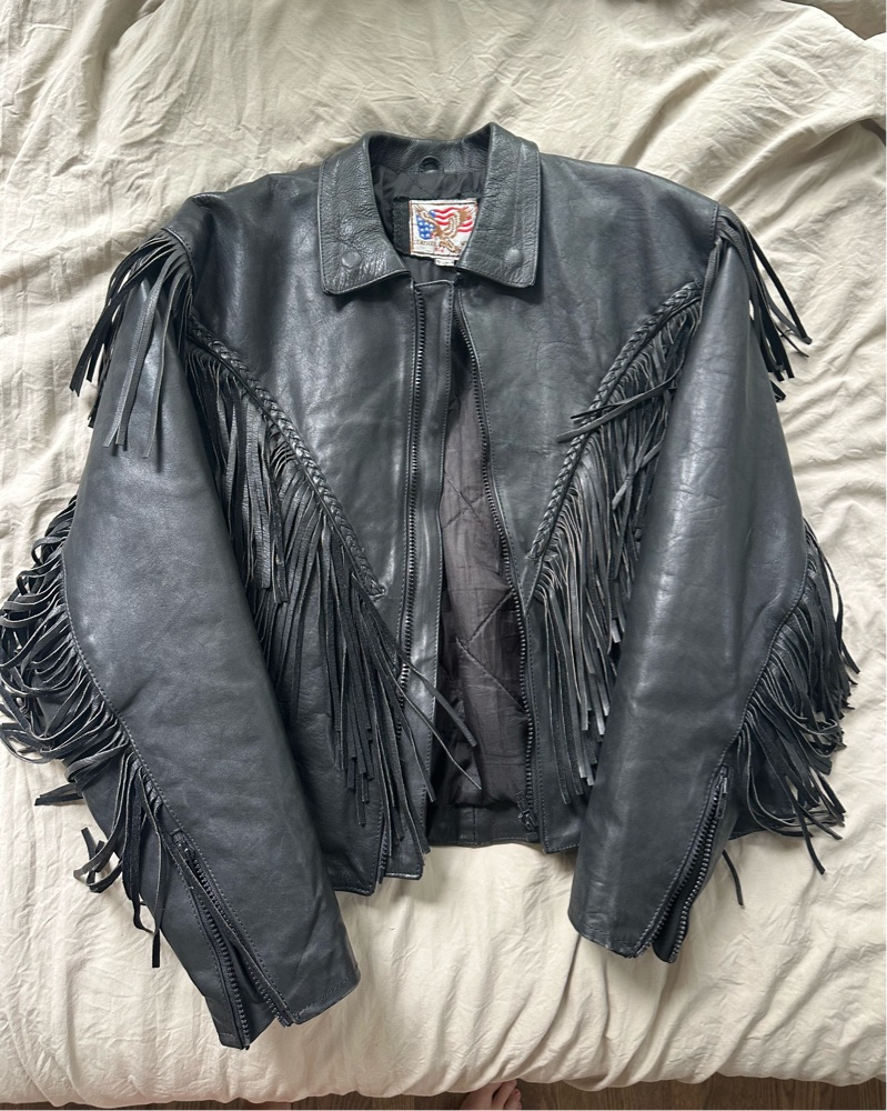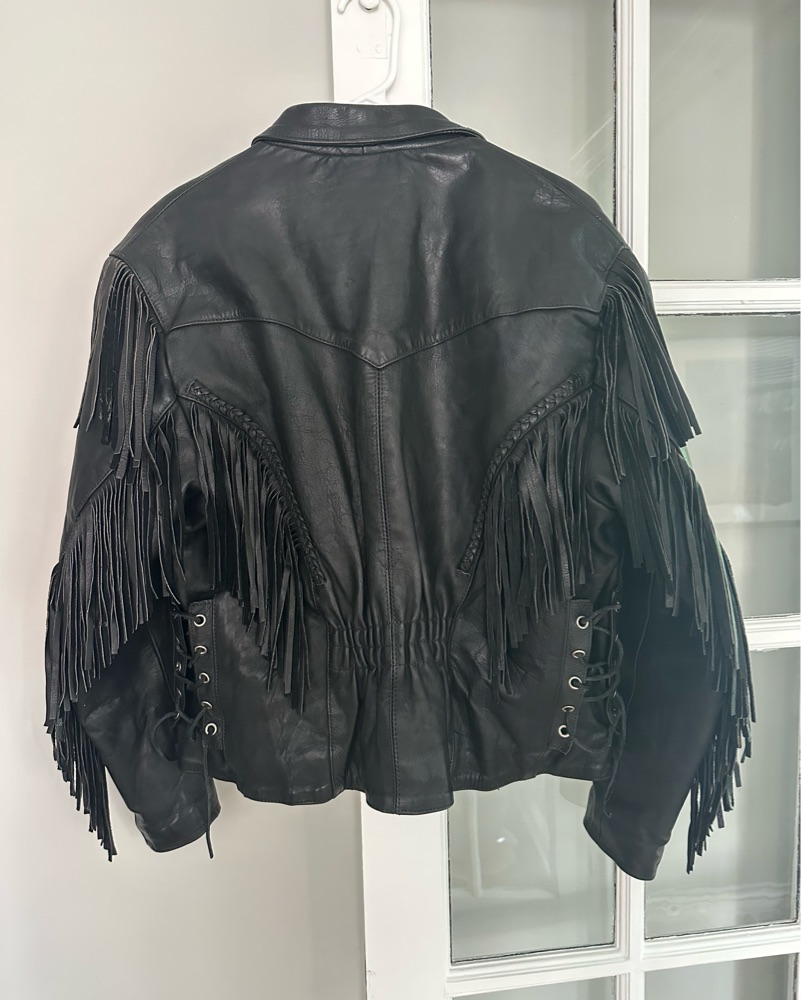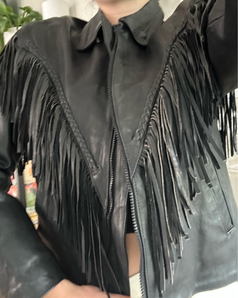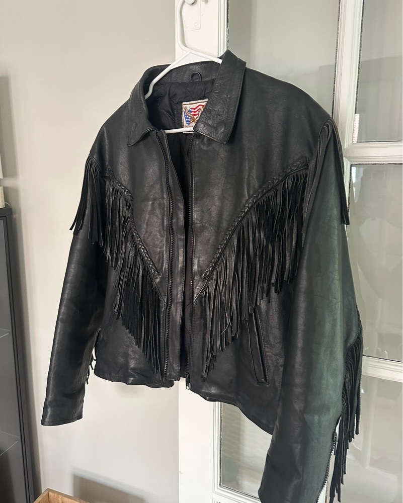Vintage leather biker jacket with fringe, women’s large/extra large. Great condition