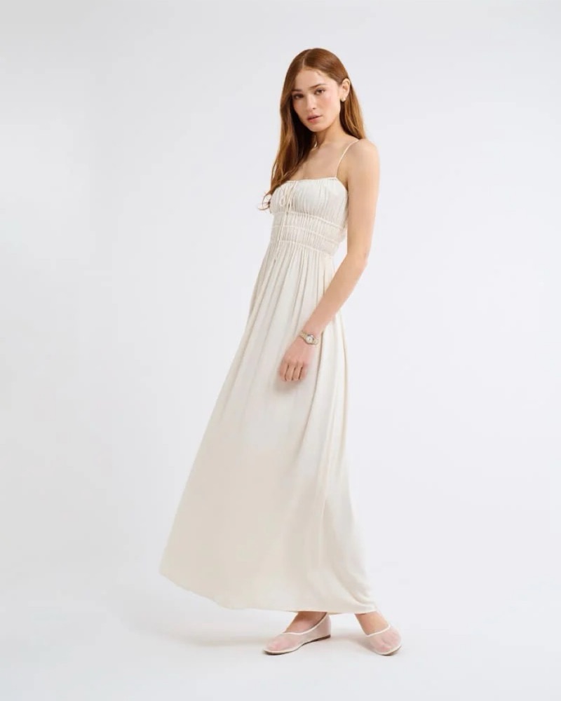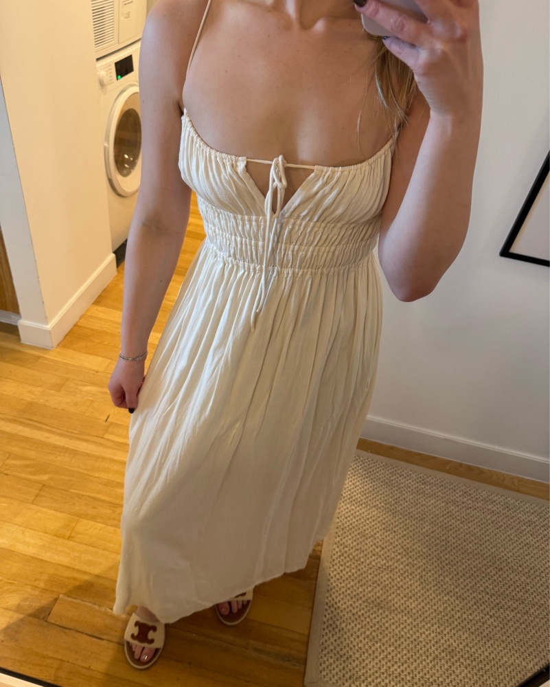 Princess dress of my dreams. Flowy and luxurious. Would look gorgeous on a larger chest. Size small, hemmed to be the perfect length for women 5'3-5'5