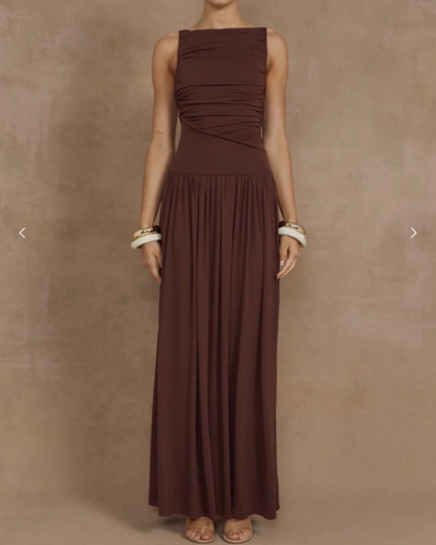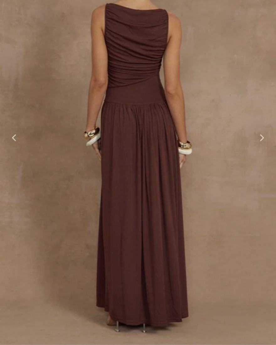 Gorgeous, flowy, flattering brown maxi dress with stretch