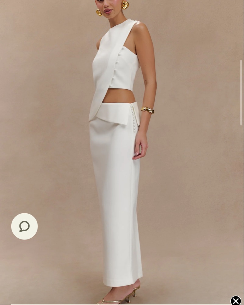 Asymmetric Sleeveless Top with button closures with the Astrid Suiting Midi Skirt, to create a look that exudes effortless chic and timeless appeal.