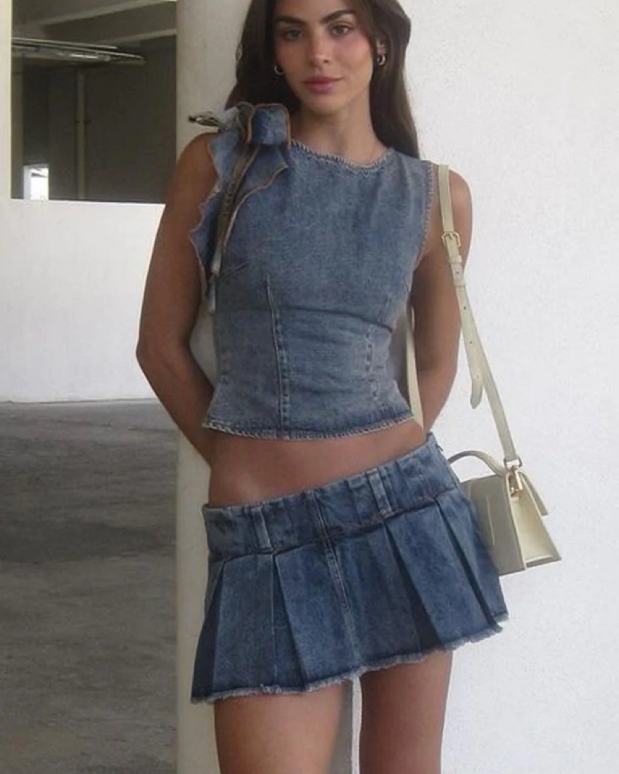 Lioness Denim Top and Skirt Set